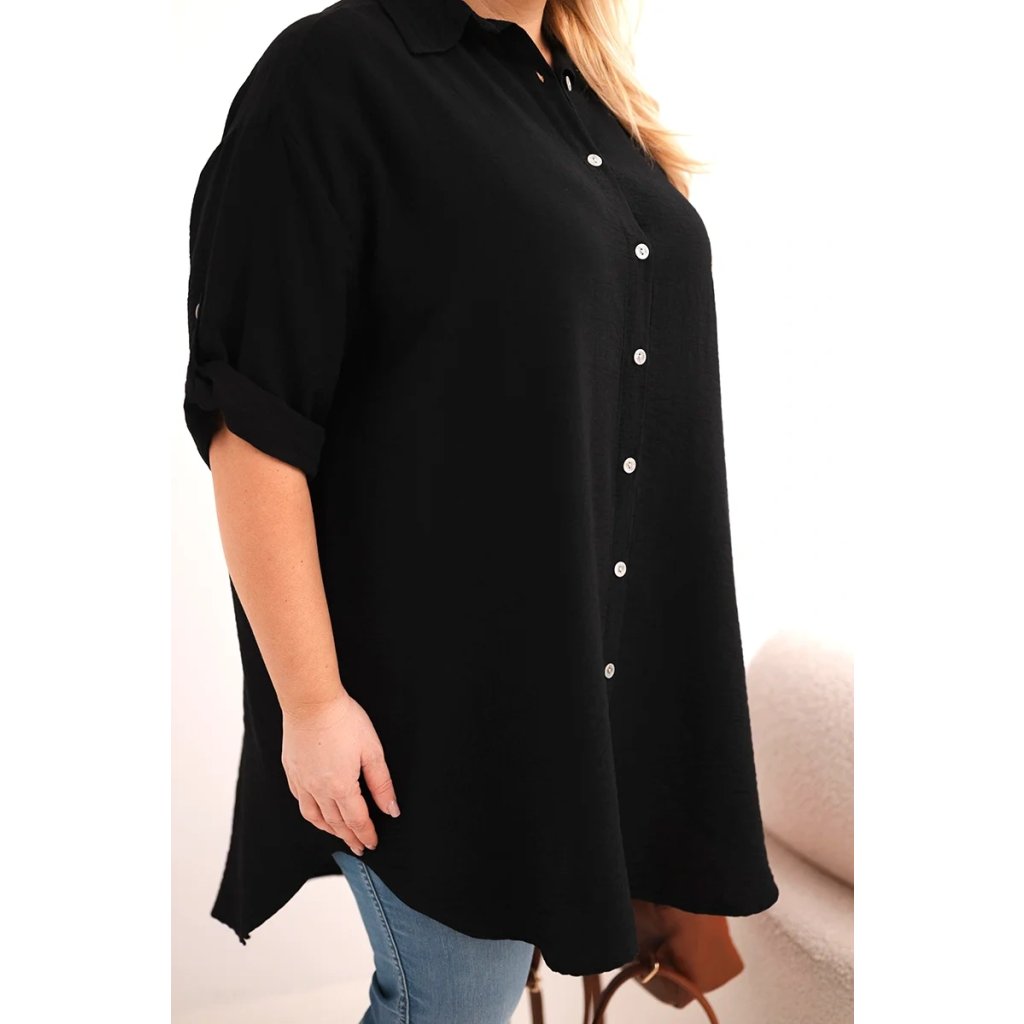 Dámská košile Plus Size z viskózy s delší zadní částí černá