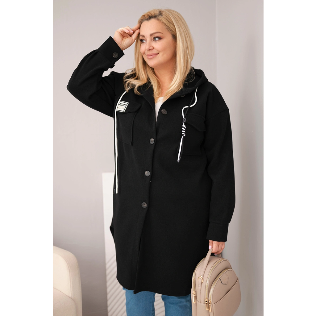 Kabát je vybaven praktickou kapucí se šňůrkami, která dodává sportovní charakter a chrání před chladem. Zapínání na knoflíky umožňuje pohodlné používání a velké přední kapsy dodávají celku funkčnost a módní vzhled. Delší střih jemně prodlužuje postavu a dělá model velmi moderním.