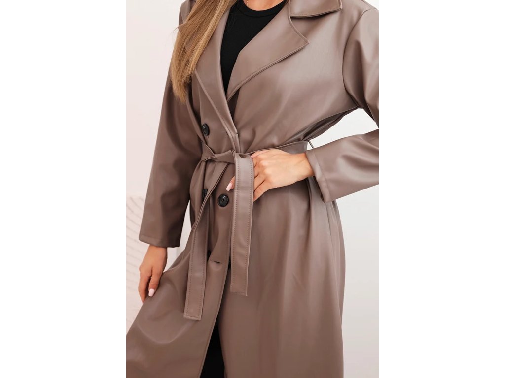 Elegantní dámský kabát s klasickým, prodlouženým střihem je skvělým návrhem na podzimní a zimní sezónu pro ženy, které ocení styl a pohodlí. Model je vybaven širokým límcem, praktickými kapsami a páskem v pase, který krásně zvýrazňuje siluetu. Délka nad kolena a dvojité zapínání na knoflíky dodávají kabátu elegantní, nadčasový charakter.
