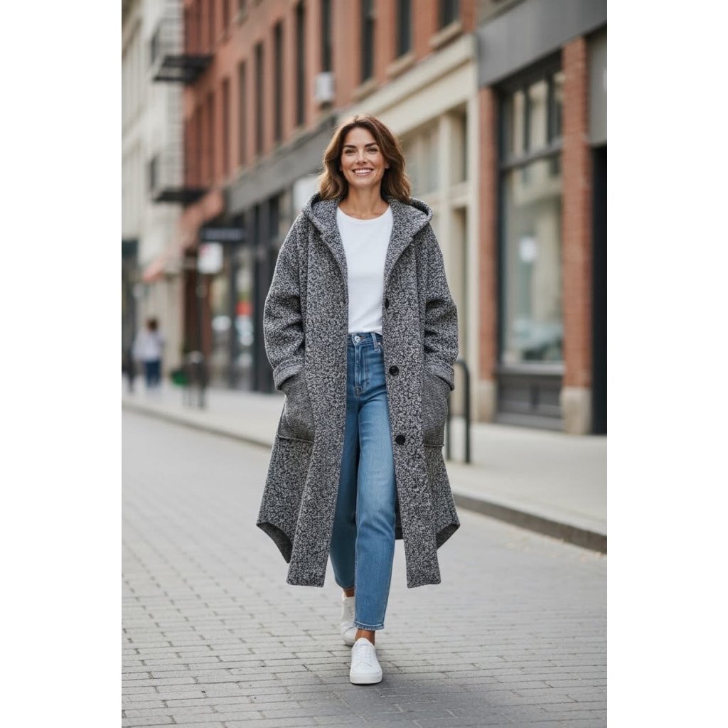 Volný střih se spadlými rameny a délkou pod lýtka dokáže s postavou zázraky. Kabát zakryje bříško, širší boky, zadeček i stehna, opticky postavu zeštíhlí a protáhne. Je ideální pro ženy, které chtějí pohodlí i styl – ať je vám 30, 40 nebo 60+, v tomto střihu působí silueta uvolněně a moderně.