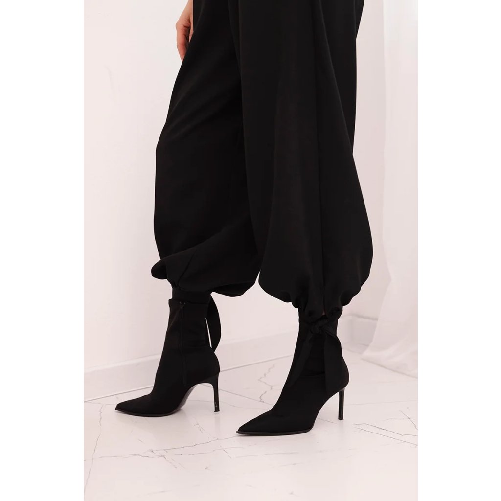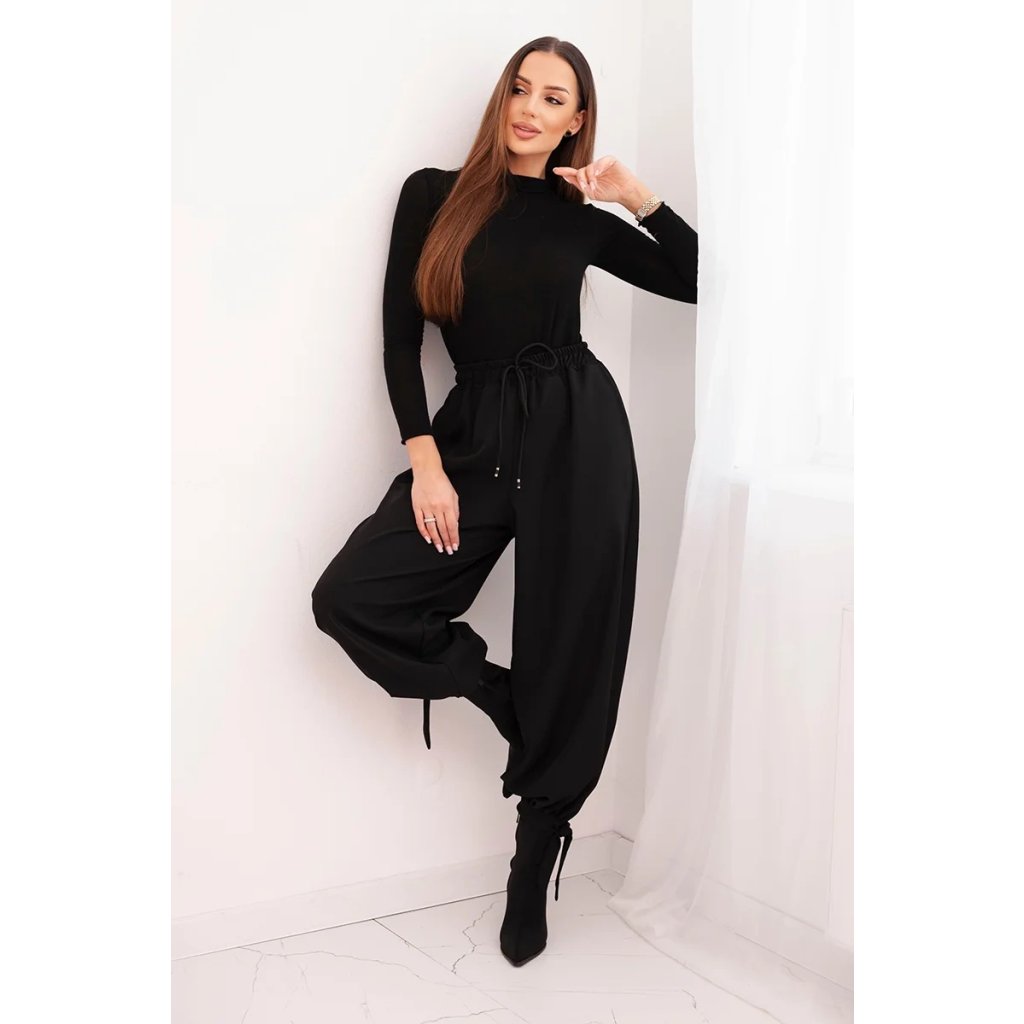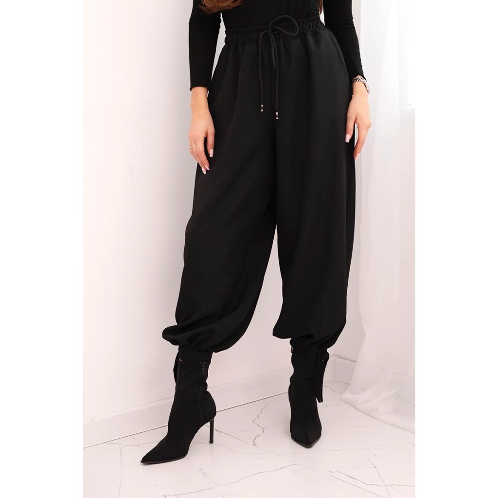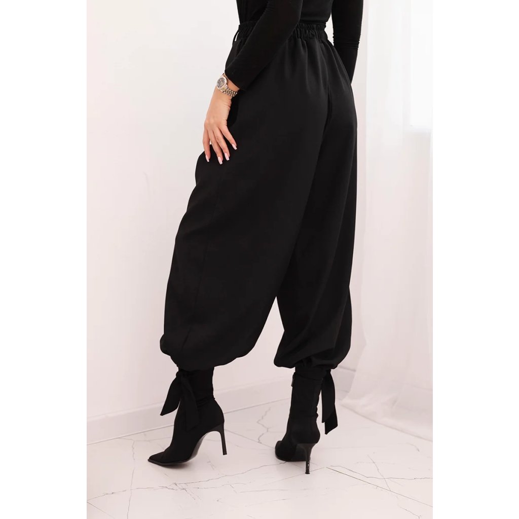 Dámské široké kalhoty se zavazováním dole černé