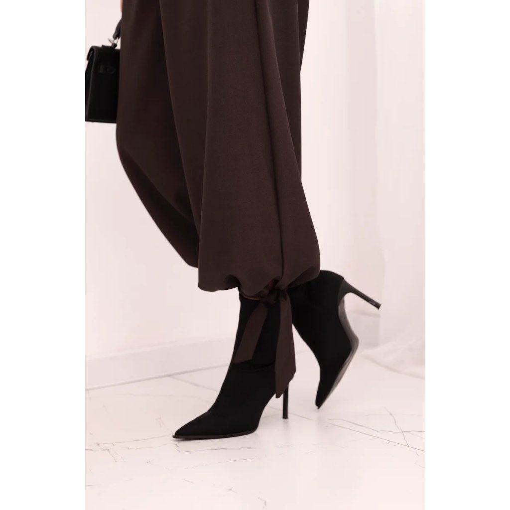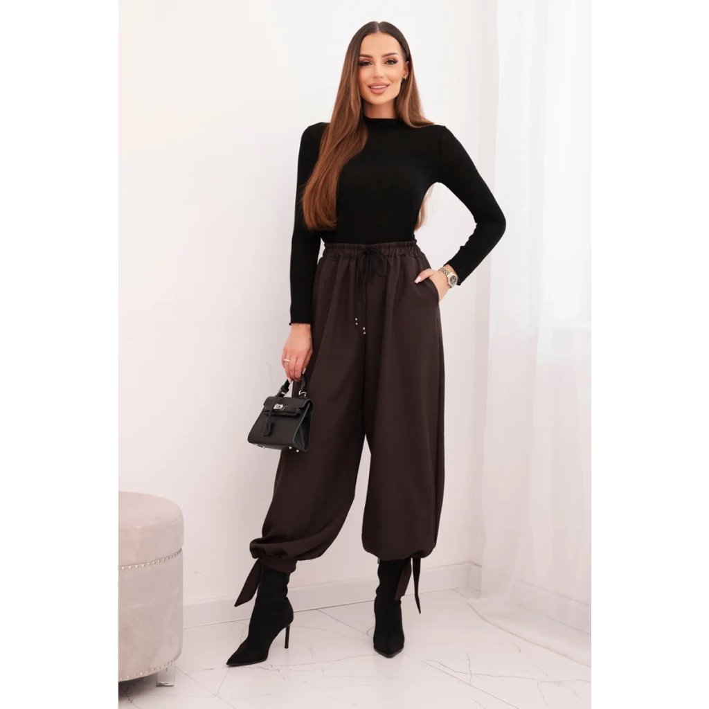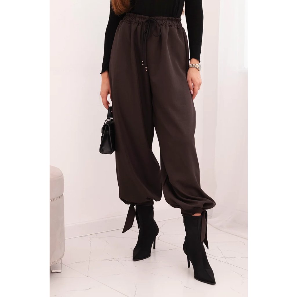 Dámské široké kalhoty se zavazováním dole hnědé