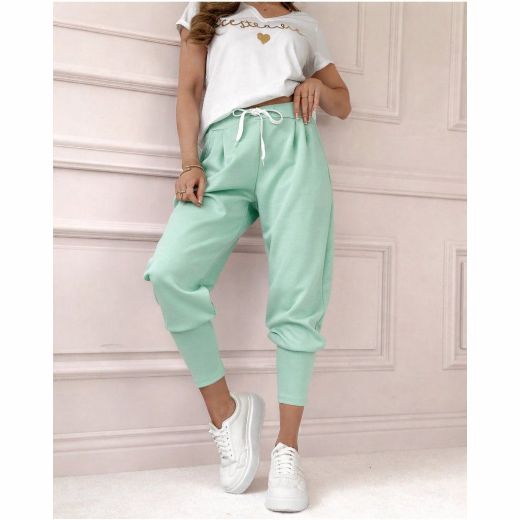 Kalhoty DARIUS mintové Jemné viskózové kalhoty s kapsami a nápletem