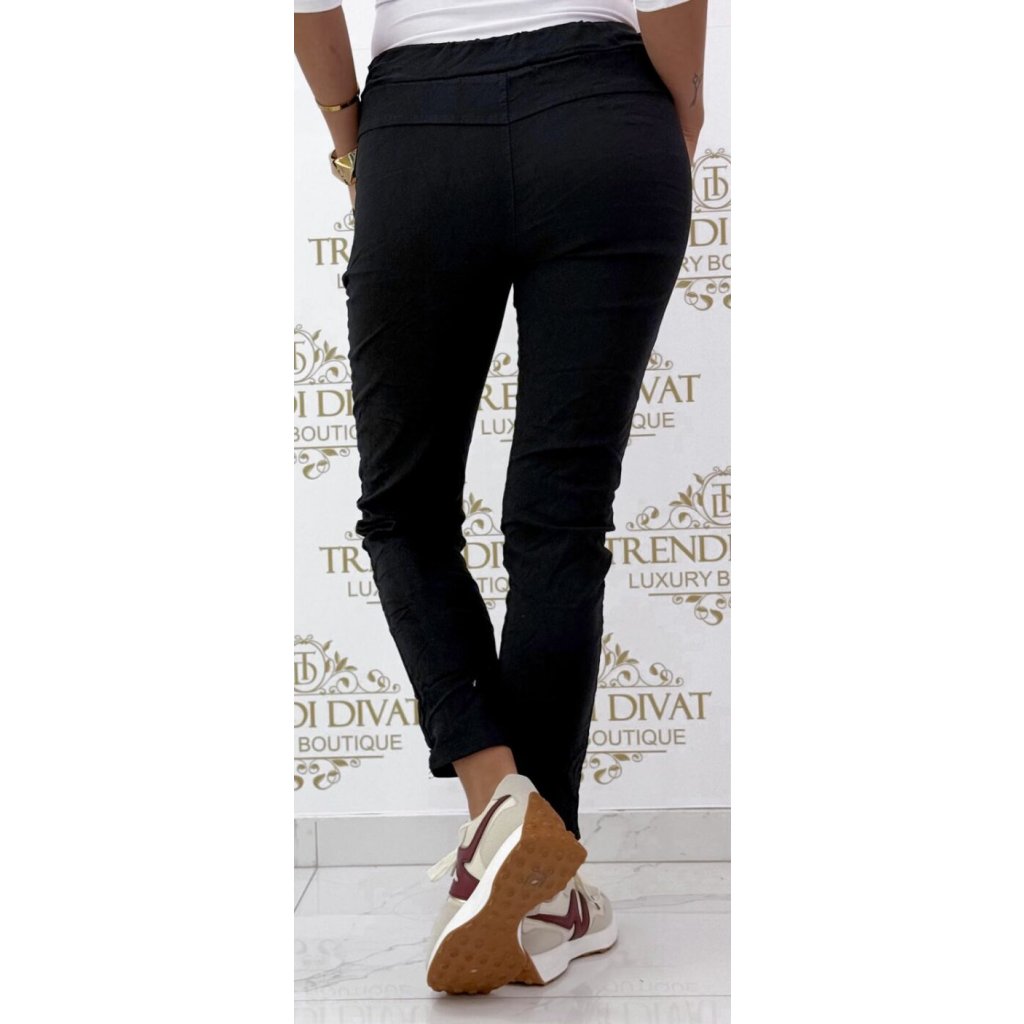 Tyto zateplené krčené kalhoty spojují pohodlí a eleganci v jednom kousku. Díky měkkému a hřejivému materiálu s vysokým podílem viskózy jsou ideální volbou pro podzimní i zimní období. Elastický pas se šňůrkou zajistí perfektní přizpůsobení postavě, zatímco lehce zúžené nohavice opticky prodlouží nohy.