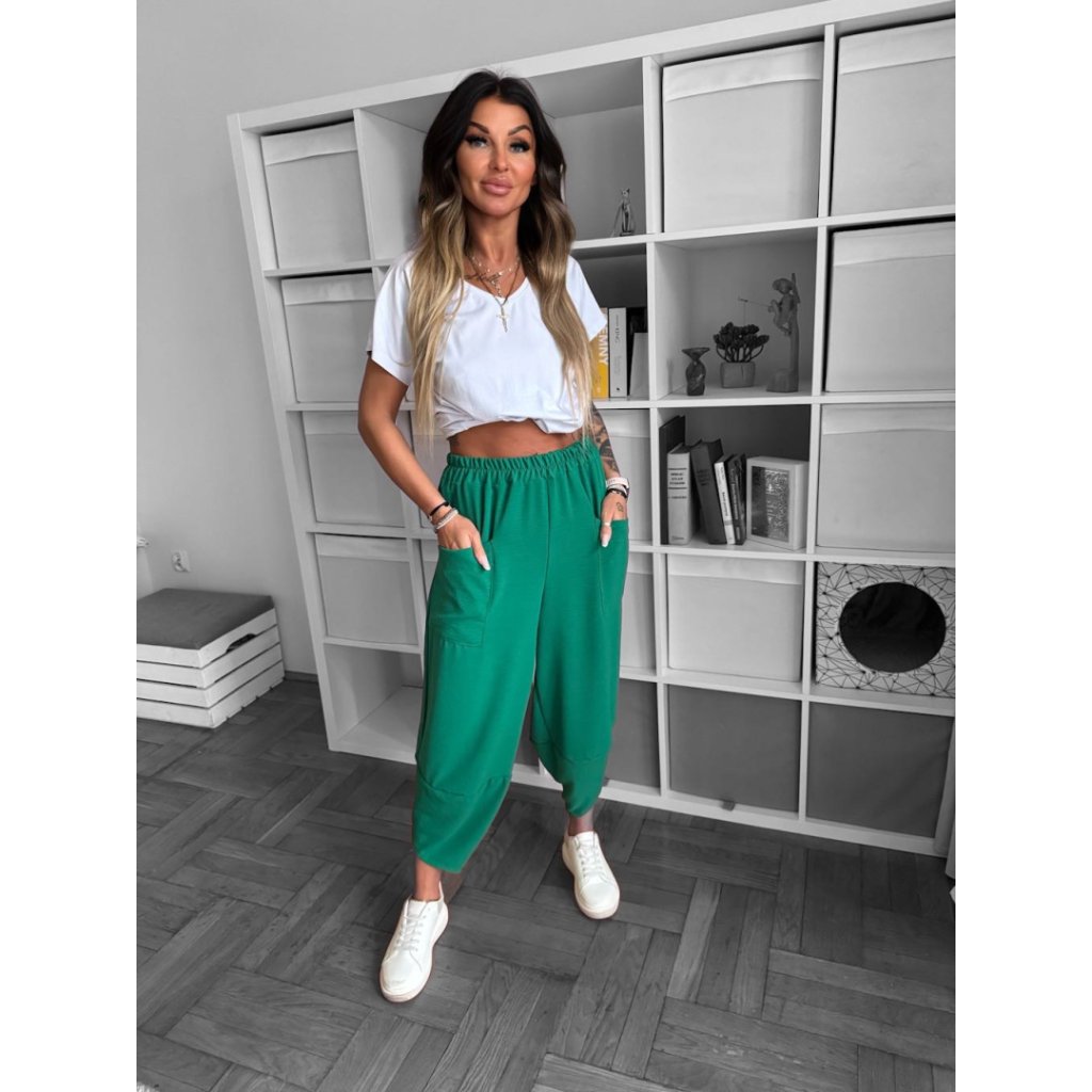 Lehké kalhoty SÁGIL zelené elastický pas • velké boční kapsy • originální zakončení