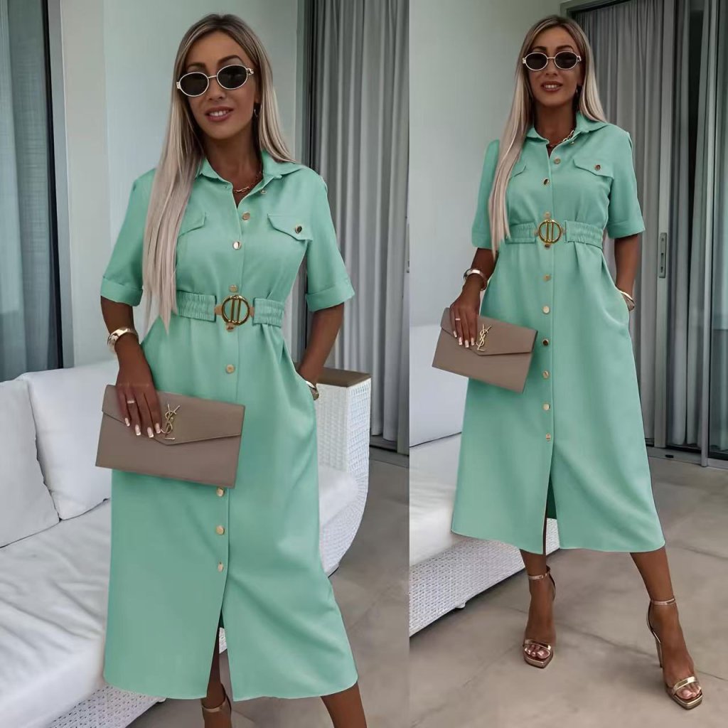 Košilové šaty LAURA mint Košilové šaty se zlatými knoflíčky a páskem