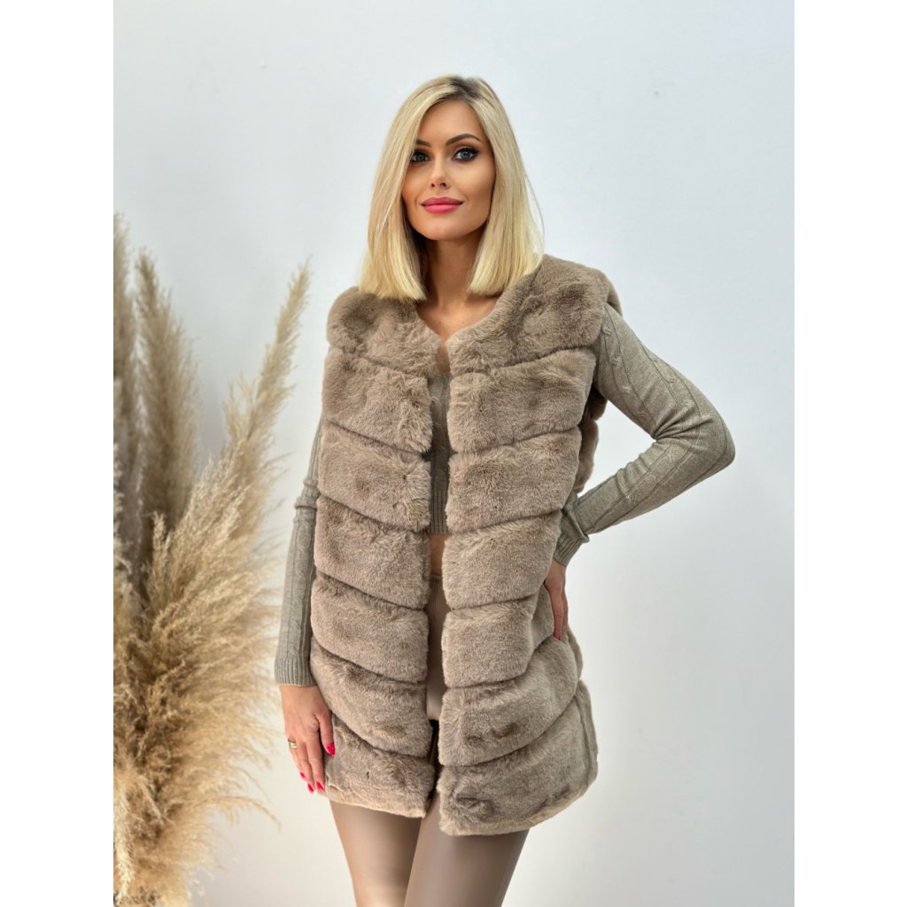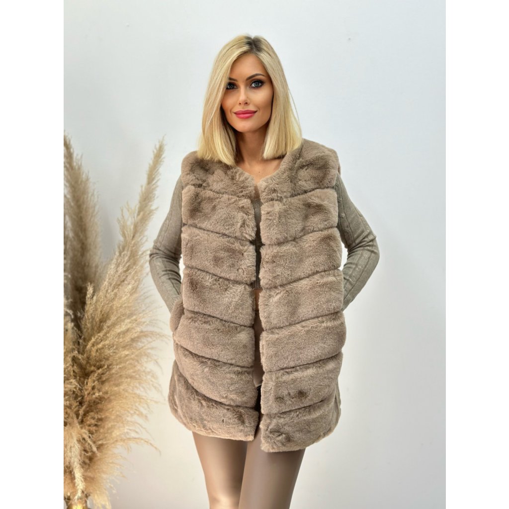 Luxusní kožešinová vesta s podšívkou dokonale zvýrazní jakýkoliv outfit. Vesta je vyrobena z imitace kůže, vyznačující se mimořádně příjemným kožíškem.