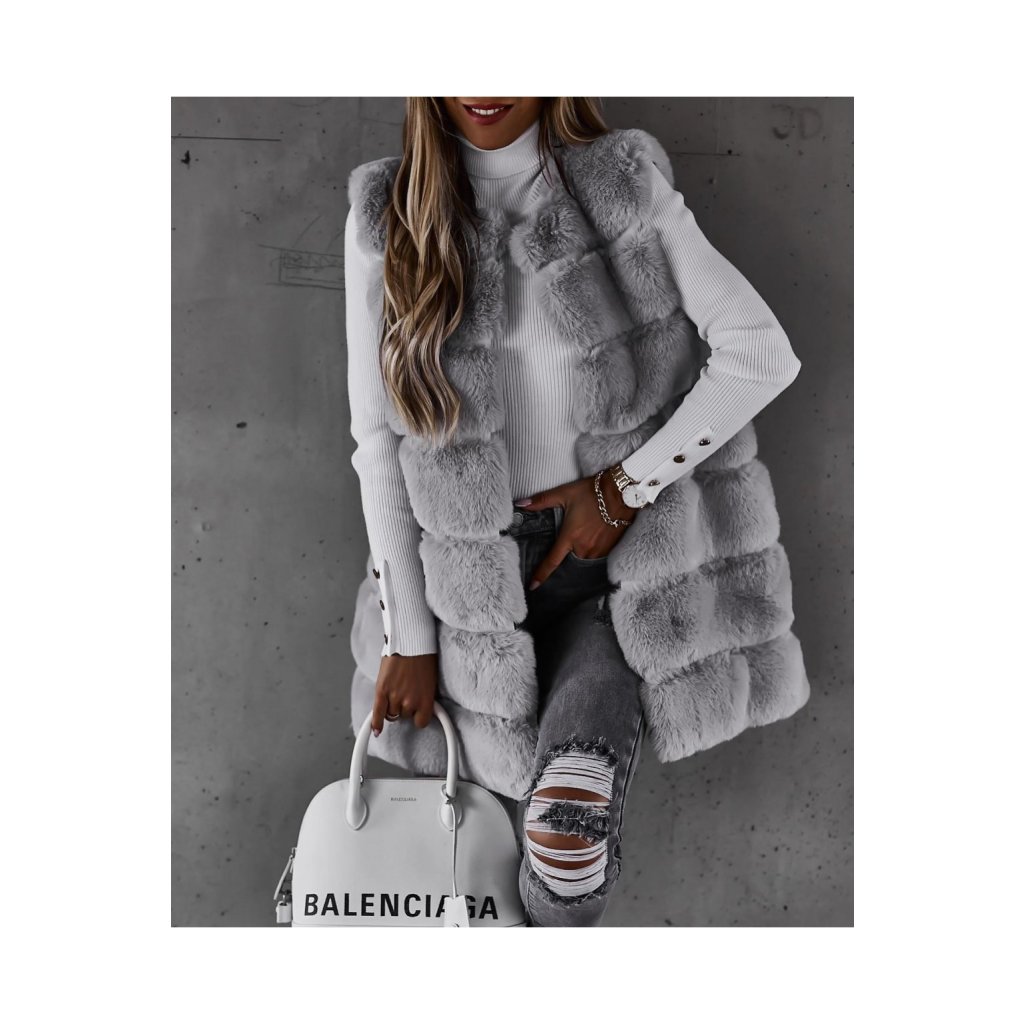 Luxusní kožešinová vesta s podšívkou dokonale zvýrazní jakýkoliv outfit. Vesta je vyrobena z imitace kůže, vyznačující se mimořádně příjemným kožíškem.