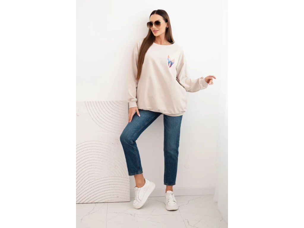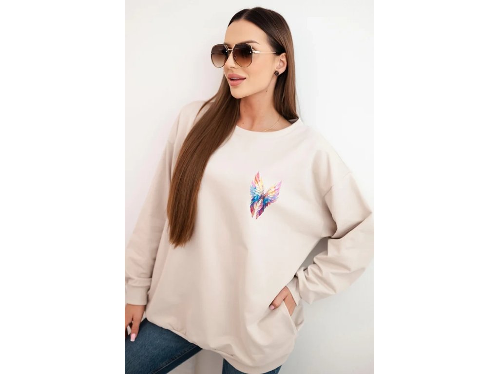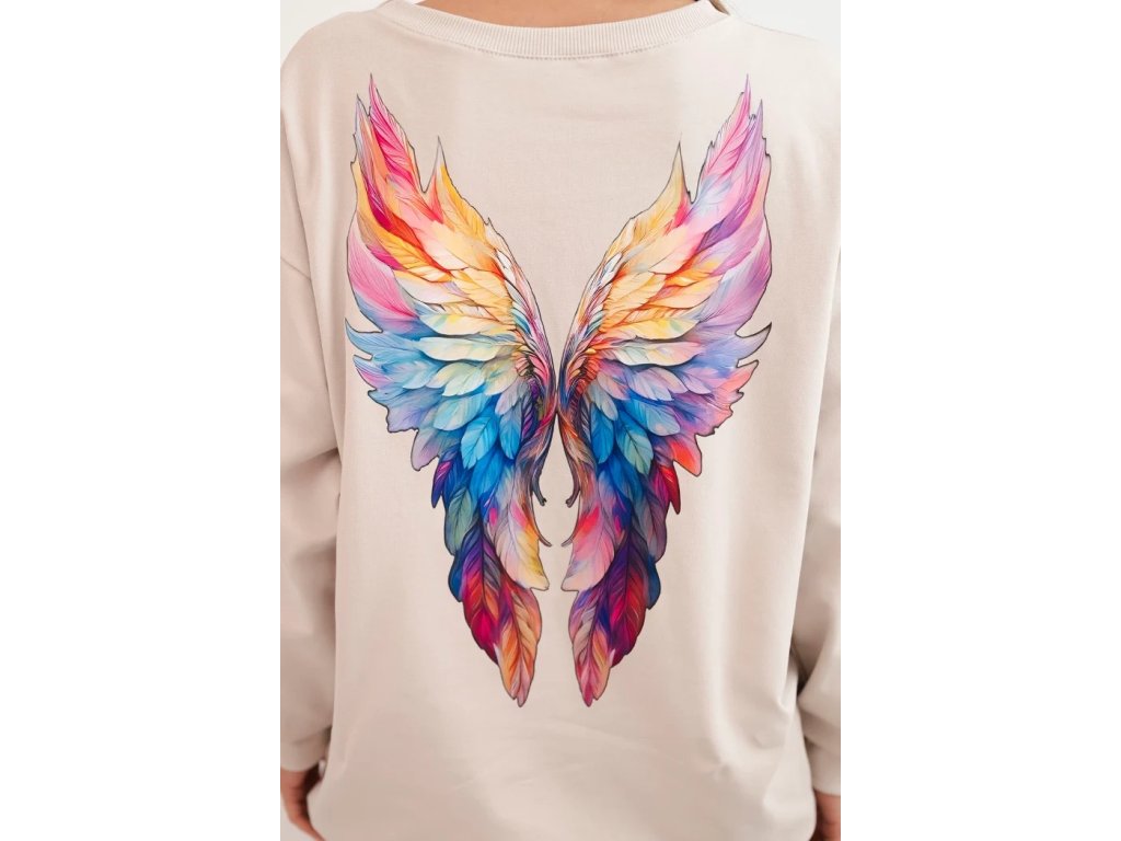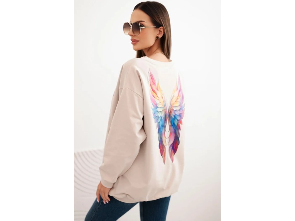 Dámská oversized mikina z bavlny s barevnými křídly na zádech béžová