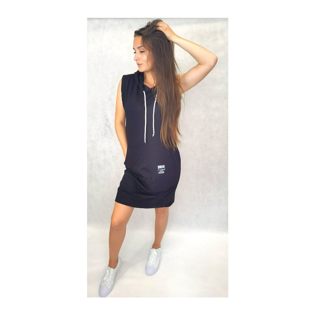 Bavlněné šaty s kapucí černé bez rukávů, univerzální velikost