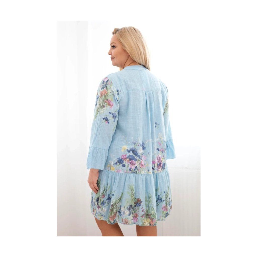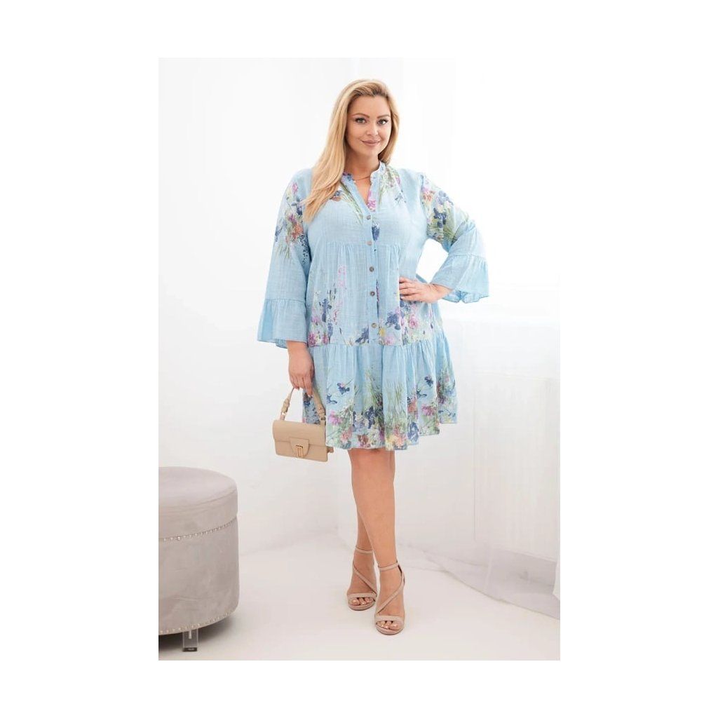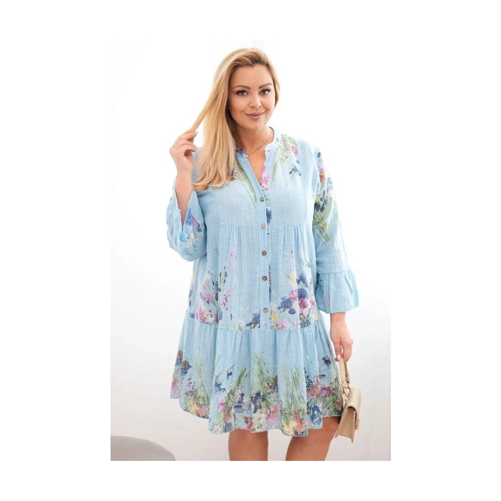 Lehké a velmi ženské dámské šaty vyrobené z přírodní bavlny jsou skvělou volbou na teplé dny. Model se vyznačuje krásným květinovým vzorem a volným, pohodlným střihem, který se hezky přizpůsobí postavě a zajišťuje volnost pohybu po celý den. Jemný výstřih do V a ozdobné knoflíky dodávají šatům jemnou eleganci a zdůrazňují jejich výjimečný charakter.