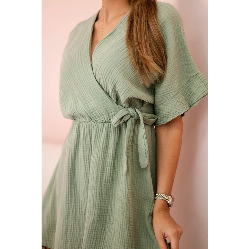 Krátké mušelínové šaty světlé khaki
