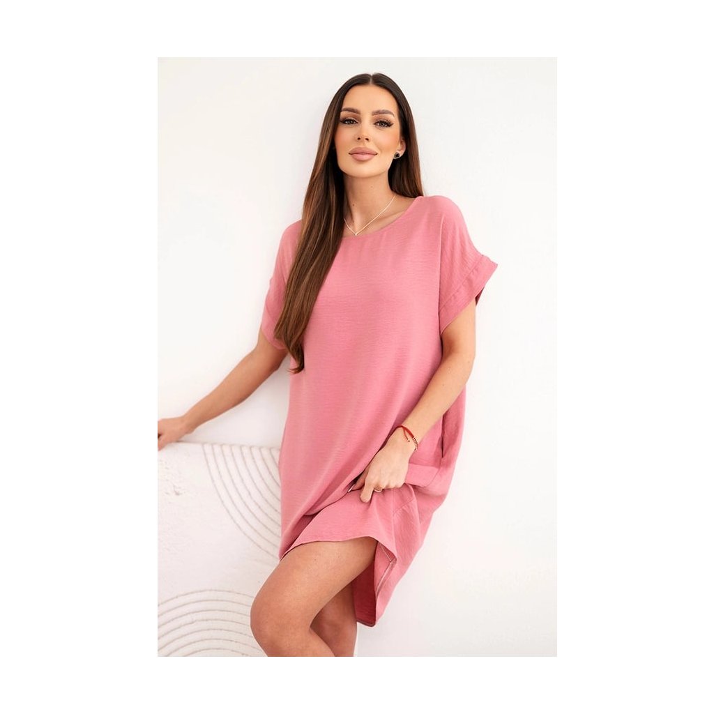 Lehké šaty růžové Krátké šaty s krátkým rukávem – UNI (S–XXL), vzdušné, kulatý výstřih