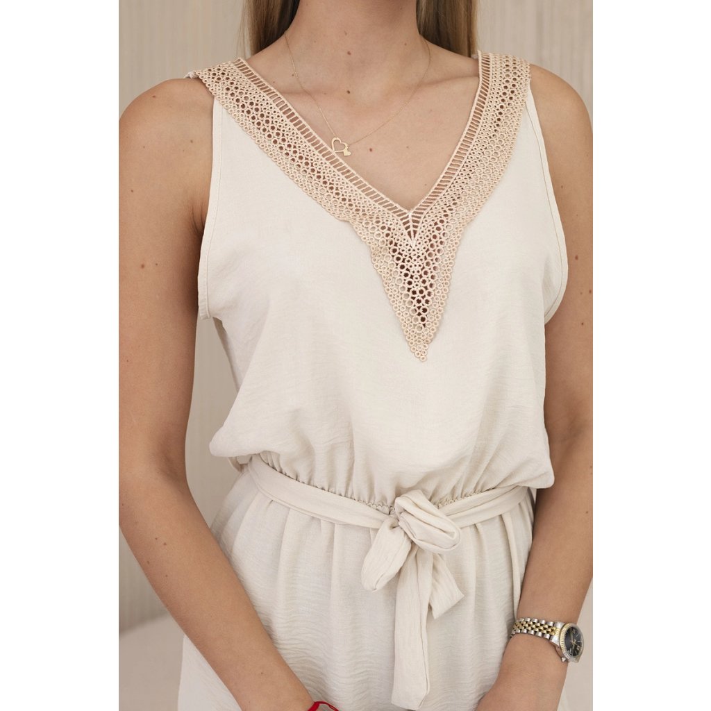 Krátký overal s ozdobnou krajkou béžový