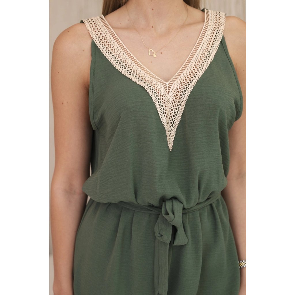 Krátký overal s ozdobnou krajkou khaki