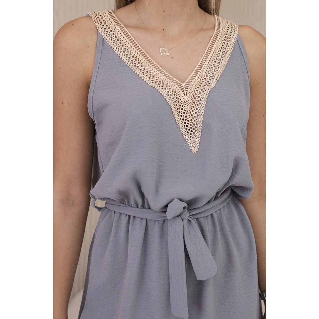 Krátký overal s ozdobnou krajkou šedý