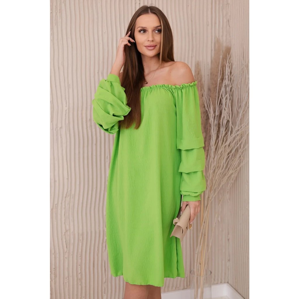 Španělské šaty s ozdobnými rukávy jasně zelené