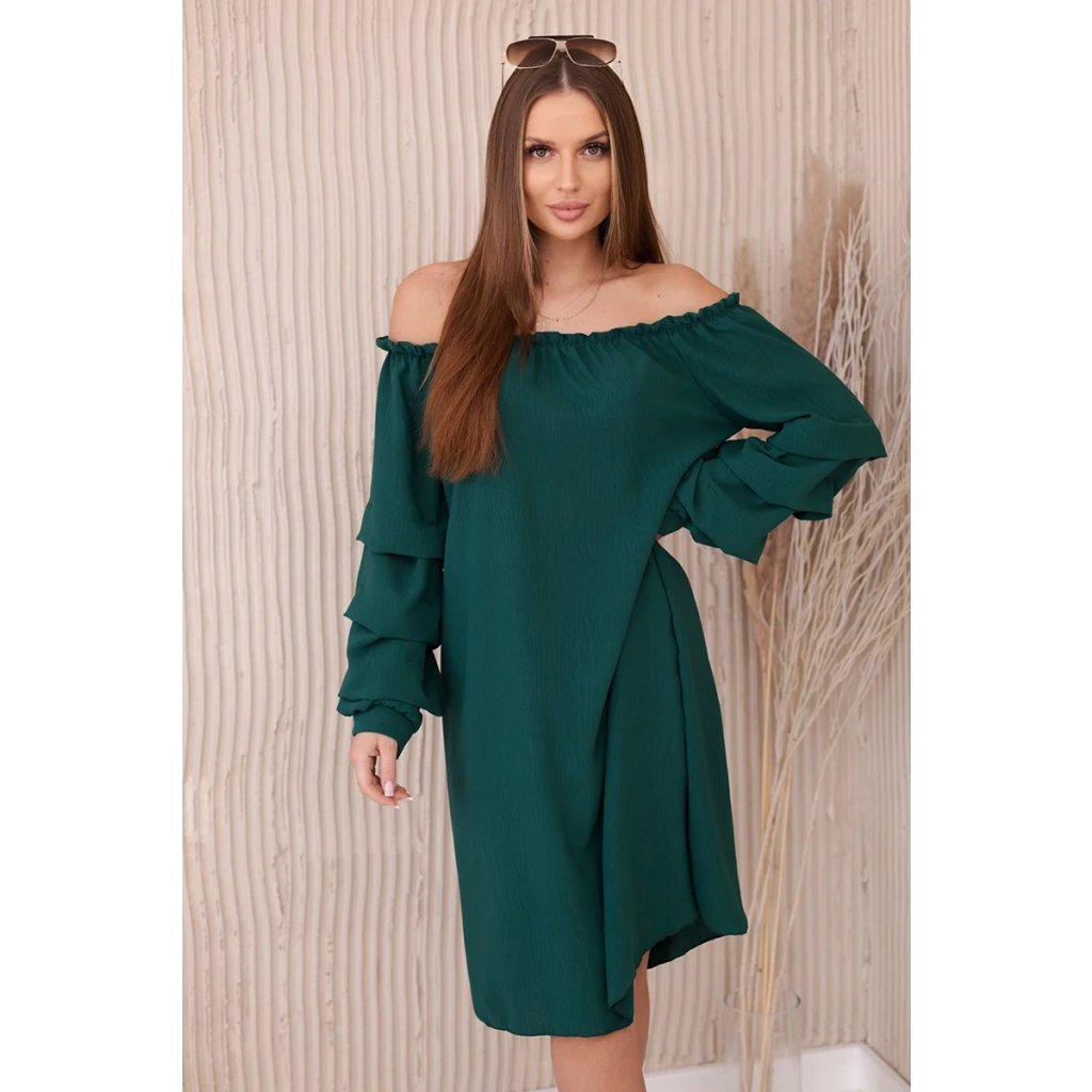 Španělské šaty s ozdobnými rukávy tmavě zelené