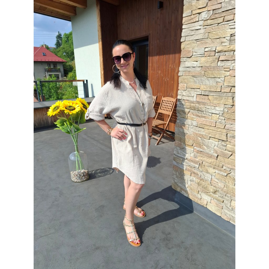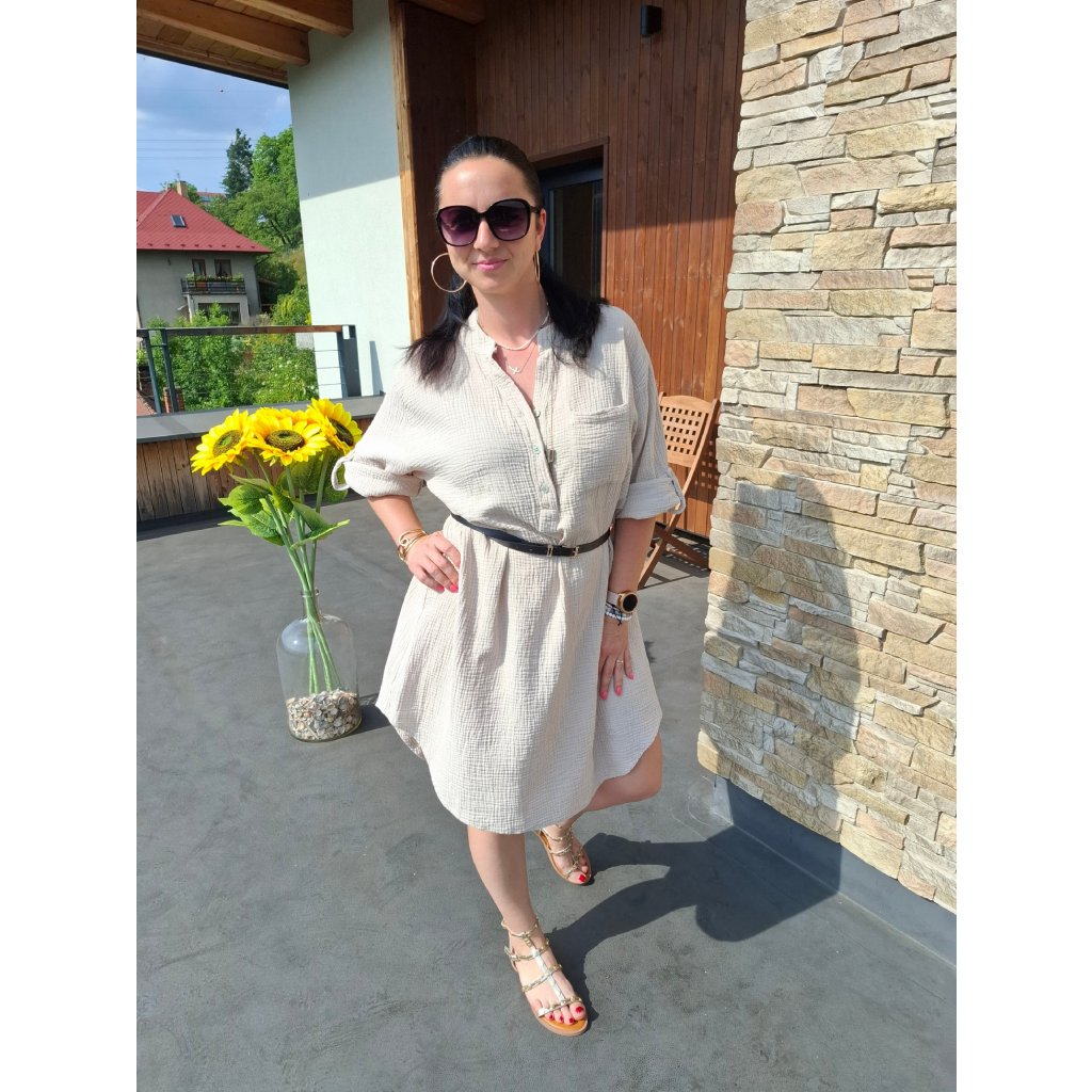 Mušelínové šaty ADINA béžové Mušelínové, s 3/4 rukávem a kapsou