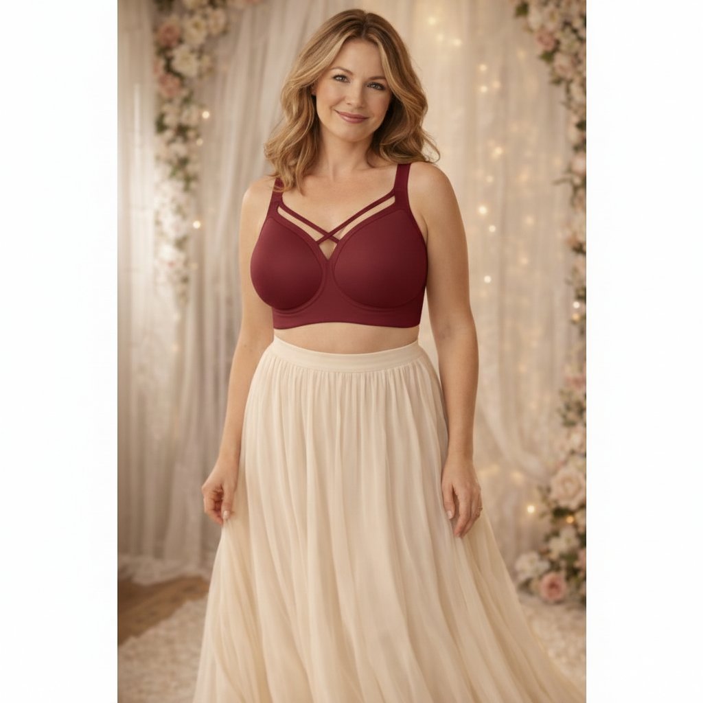 Bezešvá podprsenka LILIAN bordo bez kostic, široká ramínka, vel. L–6XL