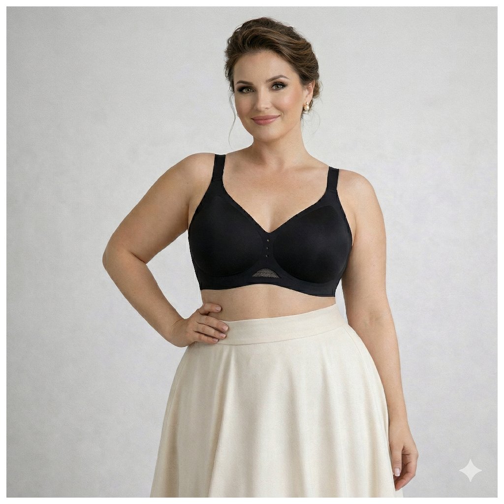 Dámská bezešvá podprsenka je navržena pro maximální komfort a přirozený vzhled. Díky všité kostici bez kovu poskytuje pevnou, ale příjemnou oporu bez nepříjemného tlaku. Jemná síťka ve výstřihu vytváří decentní push-up efekt, zatímco široká ramínka a zadní pás eliminují otlaky, špíčky a bolest zad. Podprsenka je vyztužená, nevycpaná, s možností vyjímatelné výztuže pro krásný a kulatý tvar poprsí. Praktický střih se hodí pro každodenní nošení i delší noční komfort. Dostupná ve velikostech L–6XL.