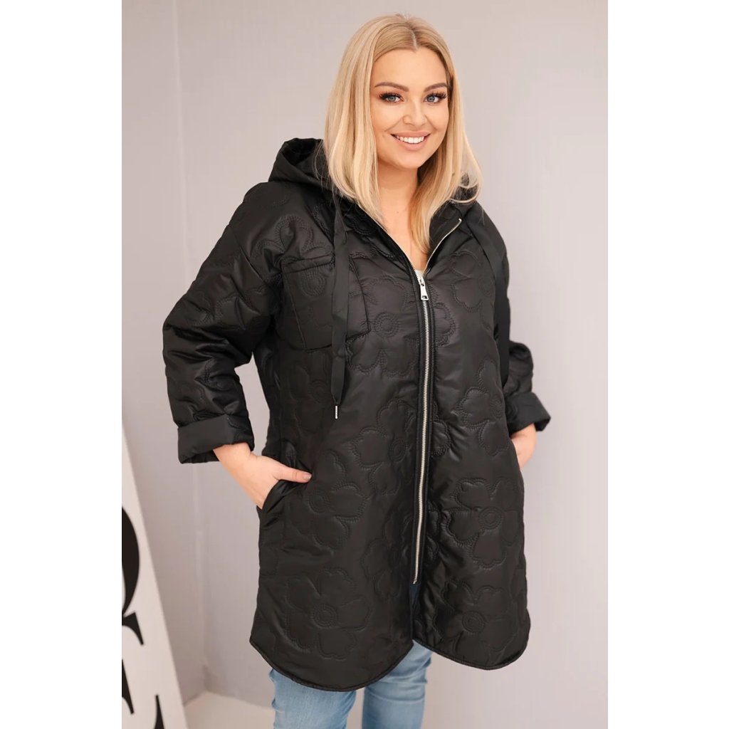 Dámská bunda Plus Size prošívaná s kapucí a nápisem HOPE černá