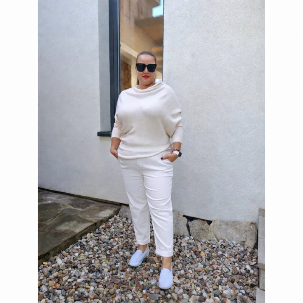 Pružné kalhoty BEATA bílé Pružný pas, elastický materiál, S–3XL