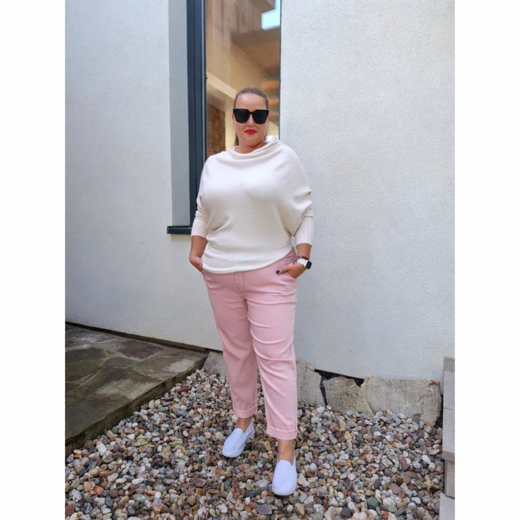 Pružné kalhoty BEATA pudrově růžové Pružný pas, elastický materiál, XXL–3XL