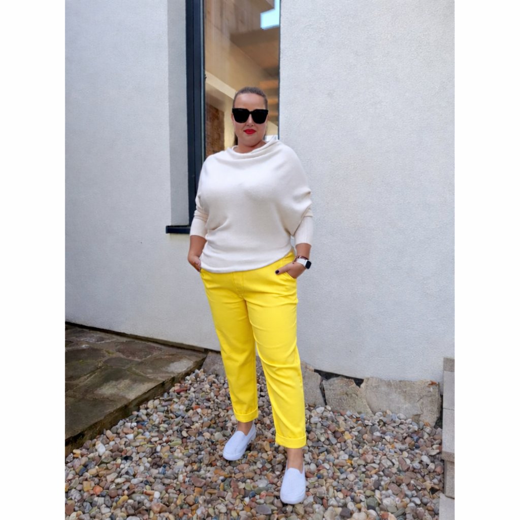 Pružné kalhoty BEATA žluté Pružný pas, elastický materiál, XX–3XL