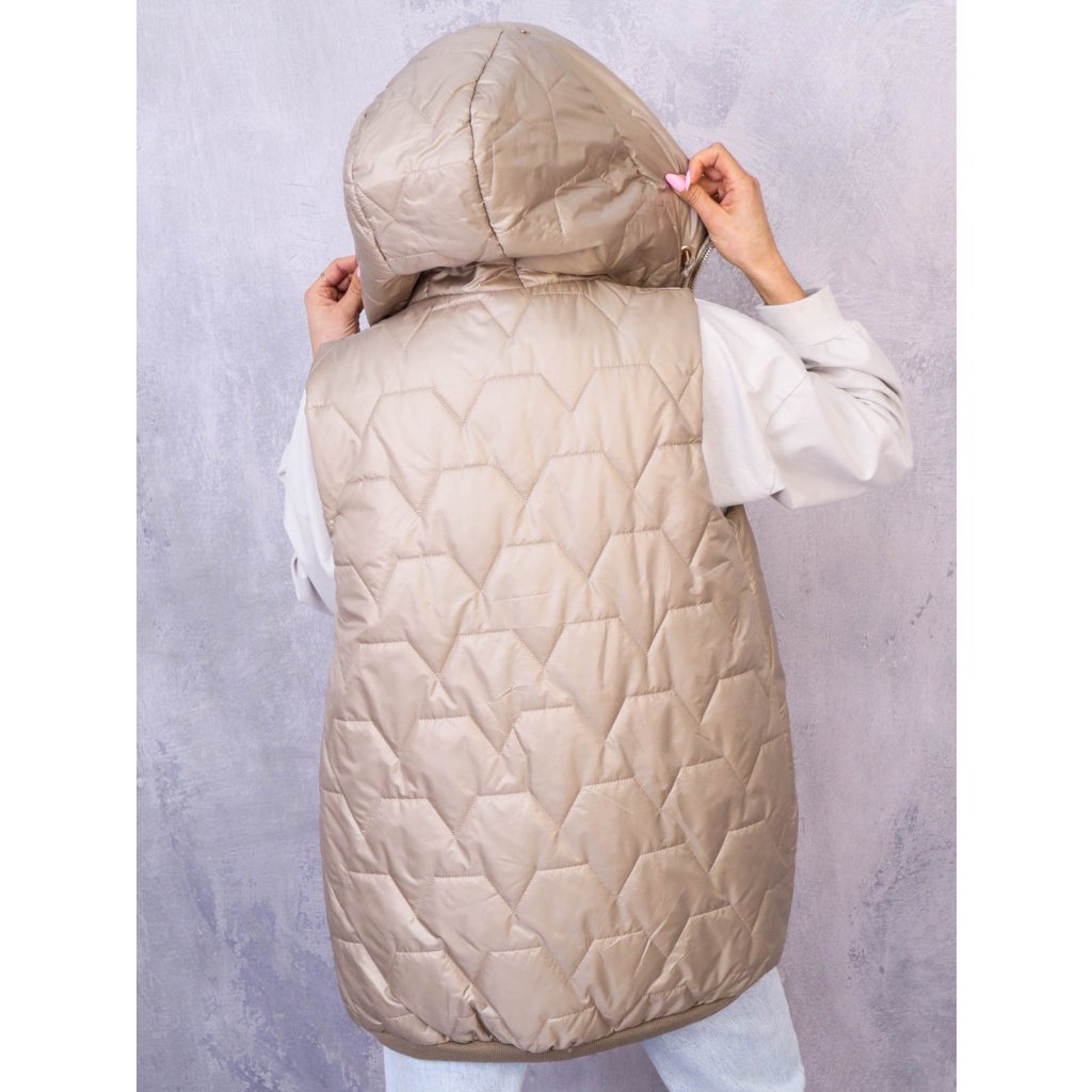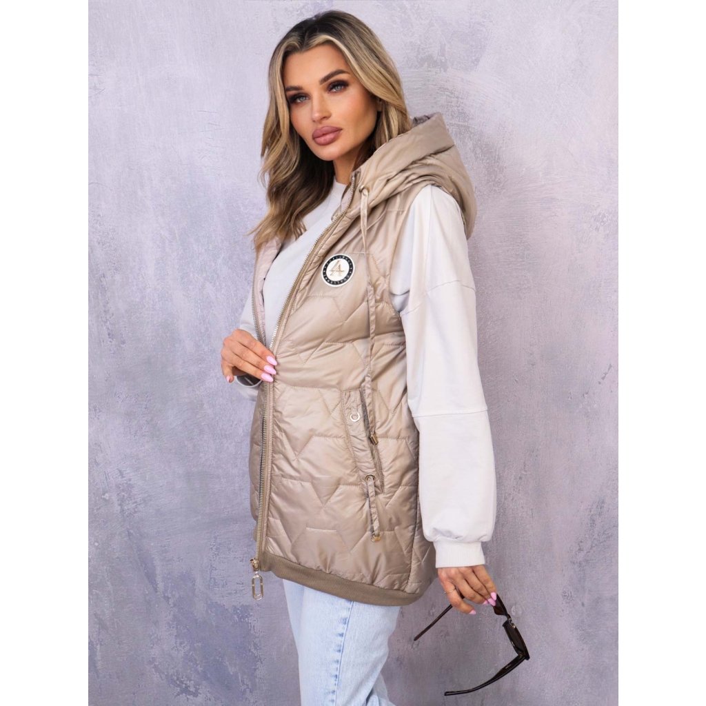 Stylová asymetrická delší vesta s originálním prošívaným designem je ideální pro přechodné období. Má velkou kapuci a jemný úplet ve spodní části, který dodává vestě pohodlný a moderní vzhled. Skvělá pro vrstvení na svetry nebo mikiny během jarních a podzimních dnů. Dostupná ve velikostech S, M, L, XL, XXL.