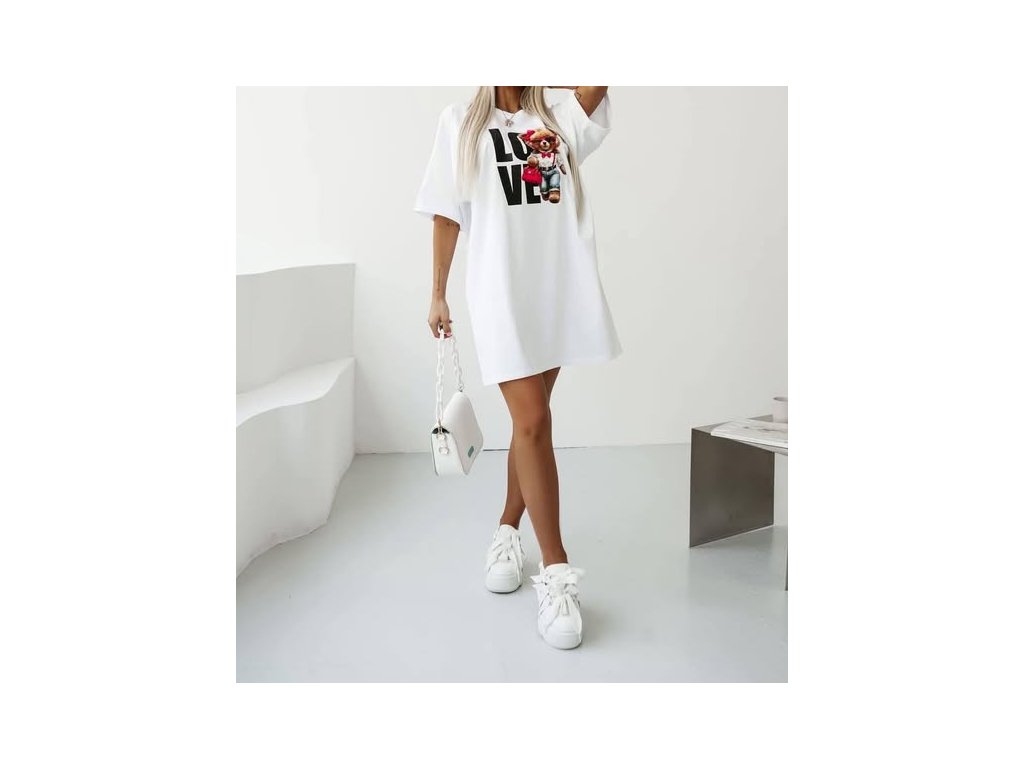 Hledáte pohodlné, ale stylové letní šaty? Tyto bílé tričkové minišaty s medvídkem a nápisem LOVE vám vykouzlí úsměv na tváři a zároveň nabídnou komfort na celý den. Volný střih v kombinaci s kvalitním bavlněným materiálem a příměsí elastanu zaručí, že se budete cítit skvěle doma, na procházce i při cestování. Díky univerzální velikosti jsou šaty vhodné pro postavy od XS až po L – padnou jako ulité.