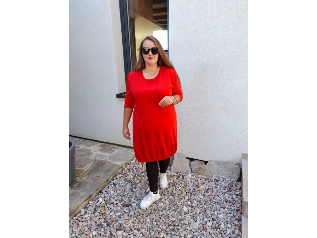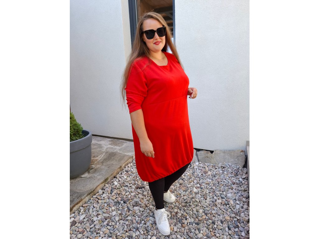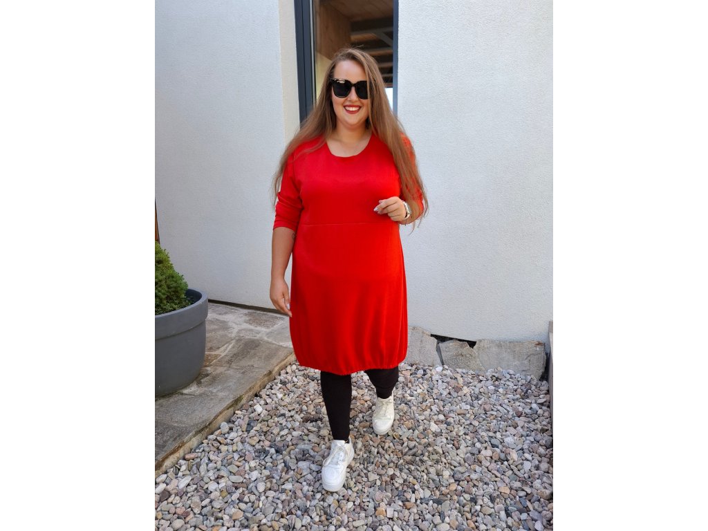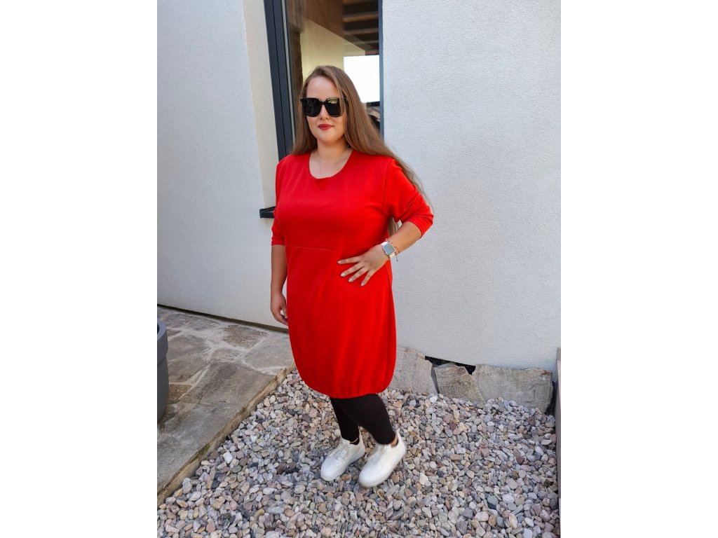 Univerzální velikost vhodná na XL–3XL krásně padne díky pružnému materiálu. Rozměry: prsa 128 cm, boky 140 cm, délka 97/106 cm. Materiálové složení 52% viskóza, 40% nylon, 8% elastan zajišťuje příjemný dotek, jemný lesk a komfort při nošení.
