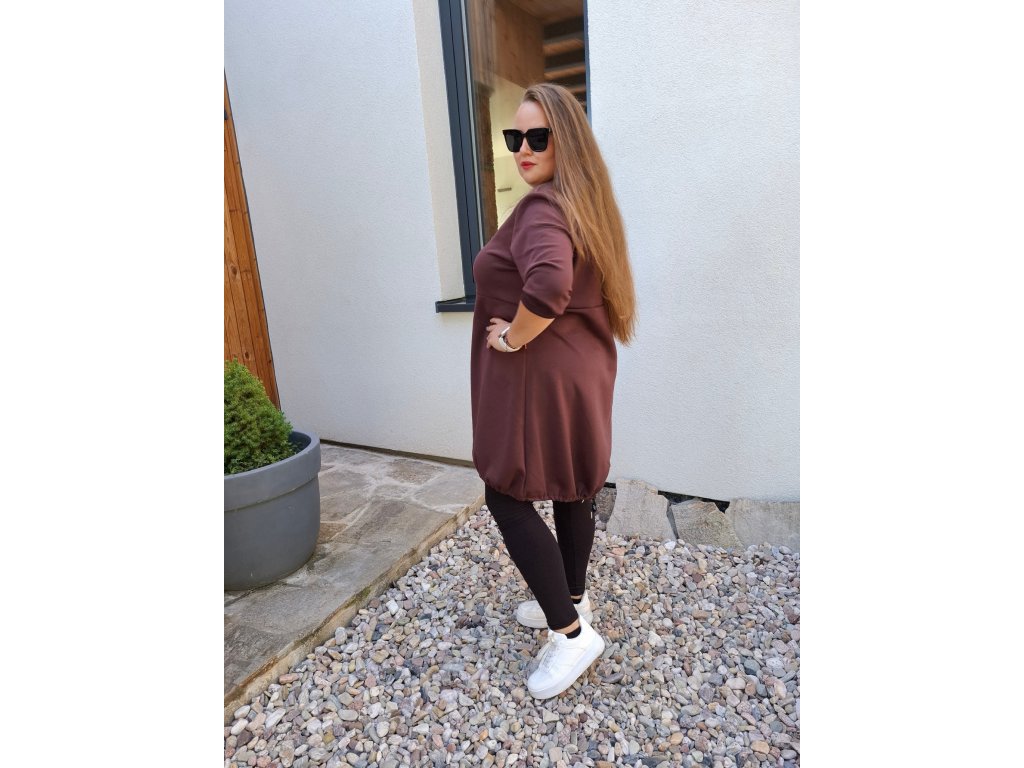 Univerzální velikost vhodná na XL–3XL krásně padne díky pružnému materiálu. Rozměry: prsa 128 cm, boky 140 cm, délka 97/106 cm. Materiálové složení 52% viskóza, 40% nylon, 8% elastan zajišťuje příjemný dotek, jemný lesk a komfort při nošení.