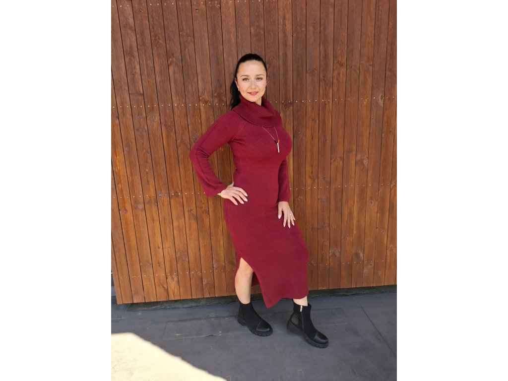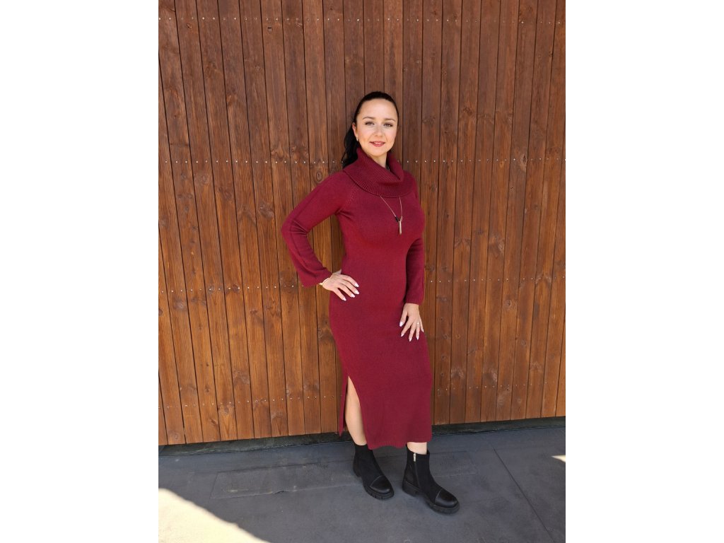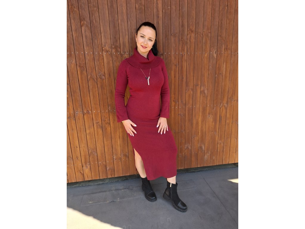 Dlouhé pletené šaty VIKI bordo