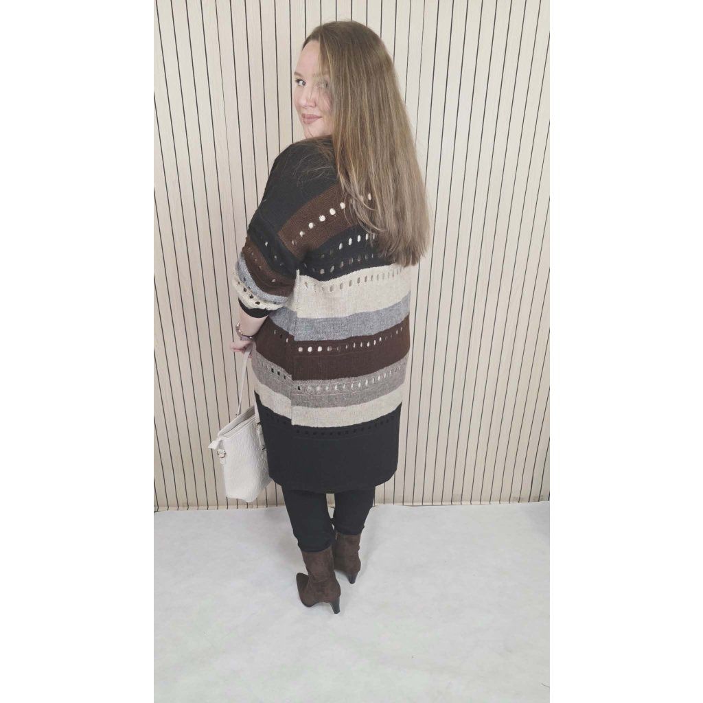 Dlouhý pletený kardigan Alex černý pastelový pruhovaný svetr
