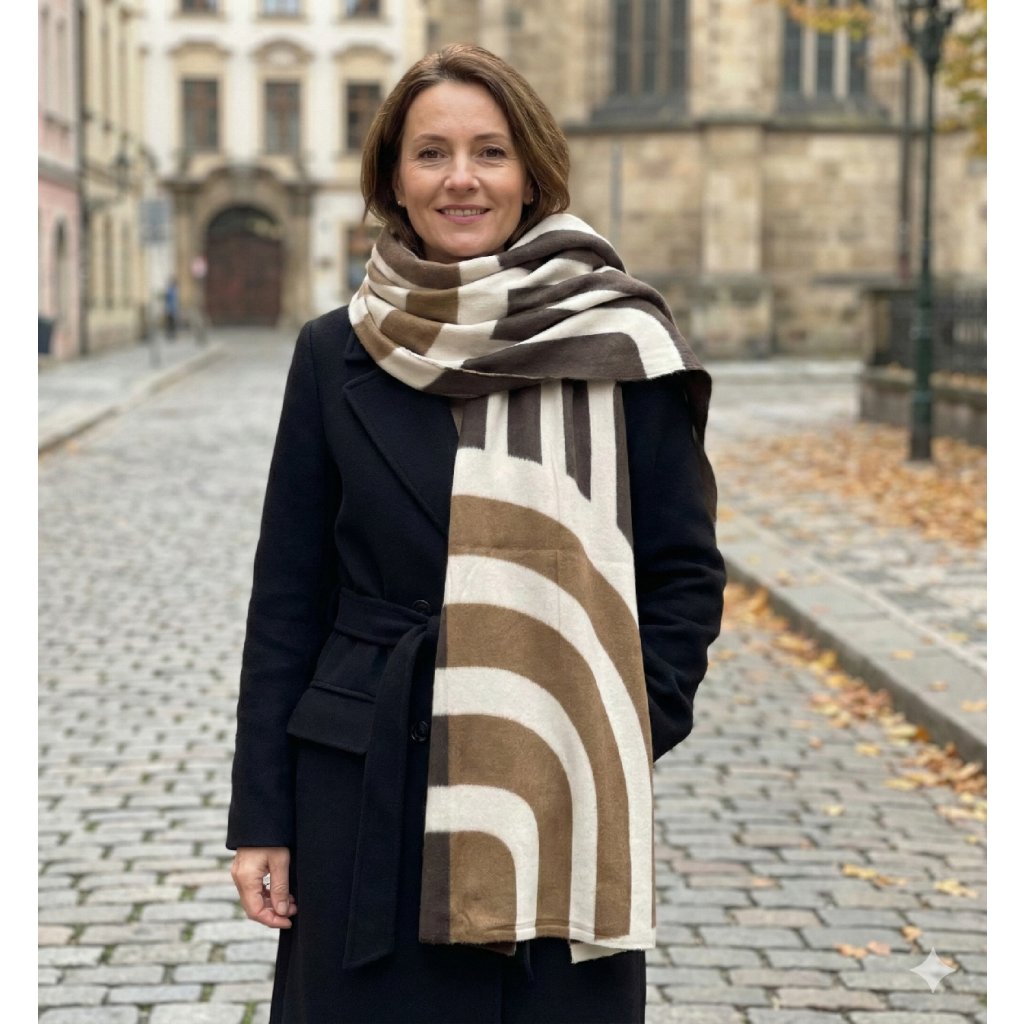 Velkorysé rozměry 200 × 70 cm umožňují různé způsoby nošení – šálu můžete volně omotat kolem krku, přehodit přes ramena jako pléd nebo ji použít jako stylový doplněk k kabátu či bundě. Je dostupná ve čtyřech barvách, které lichotí zralejšímu stylu a snadno je zkombinujete s ostatními kousky ve svém šatníku.