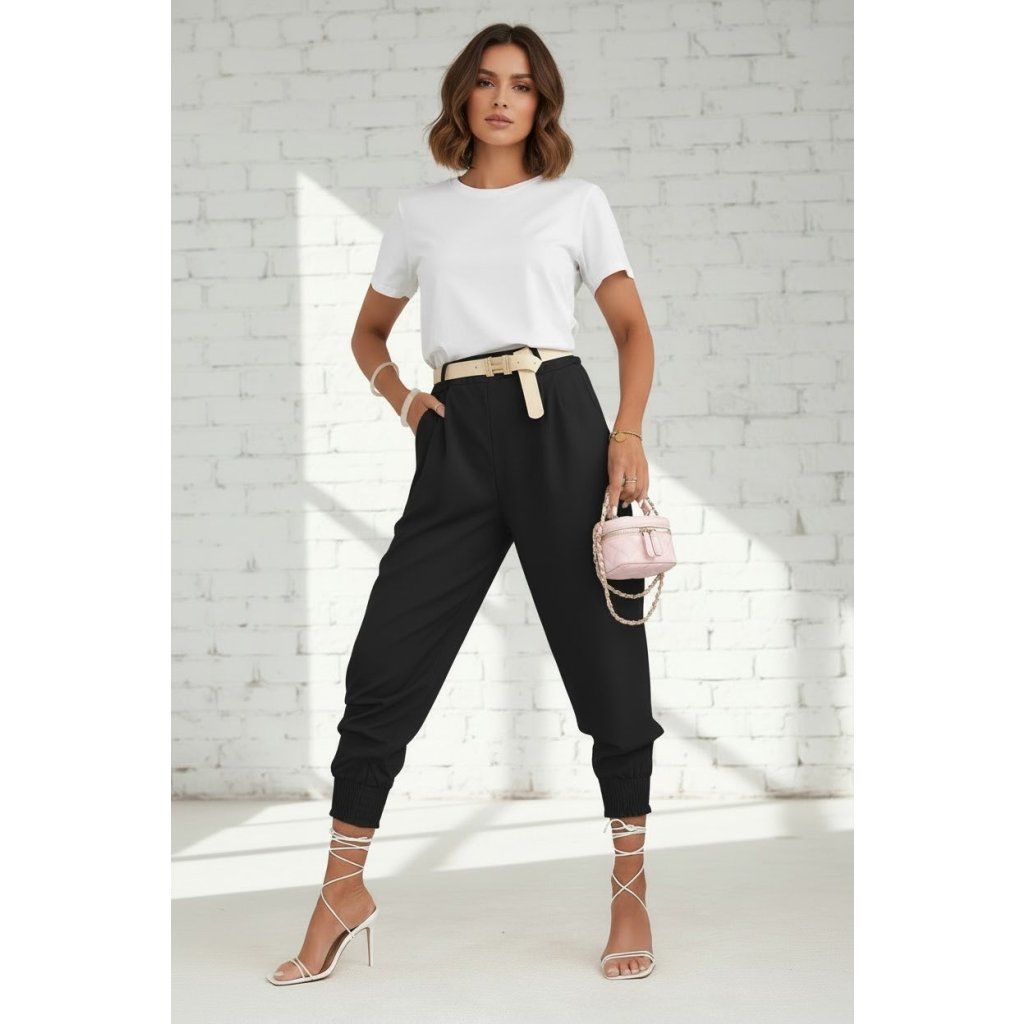 Elegantní tepláky s páskem černé Luxusně jemný materiál, pohodlný střih a sofistikovaný vzhled pro každý den