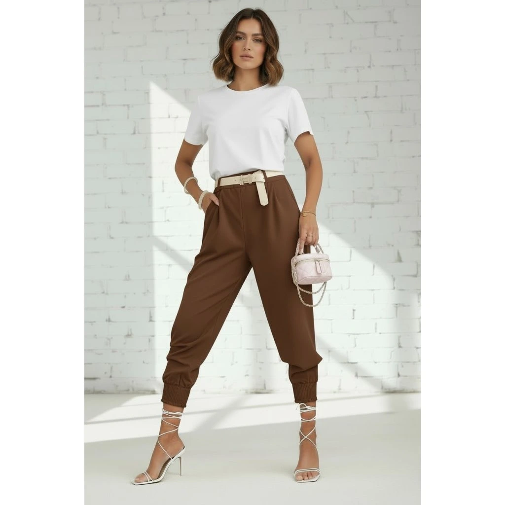 Elegantní tepláky s páskem hnědé Luxusně jemný materiál, pohodlný střih a sofistikovaný vzhled pro každý den