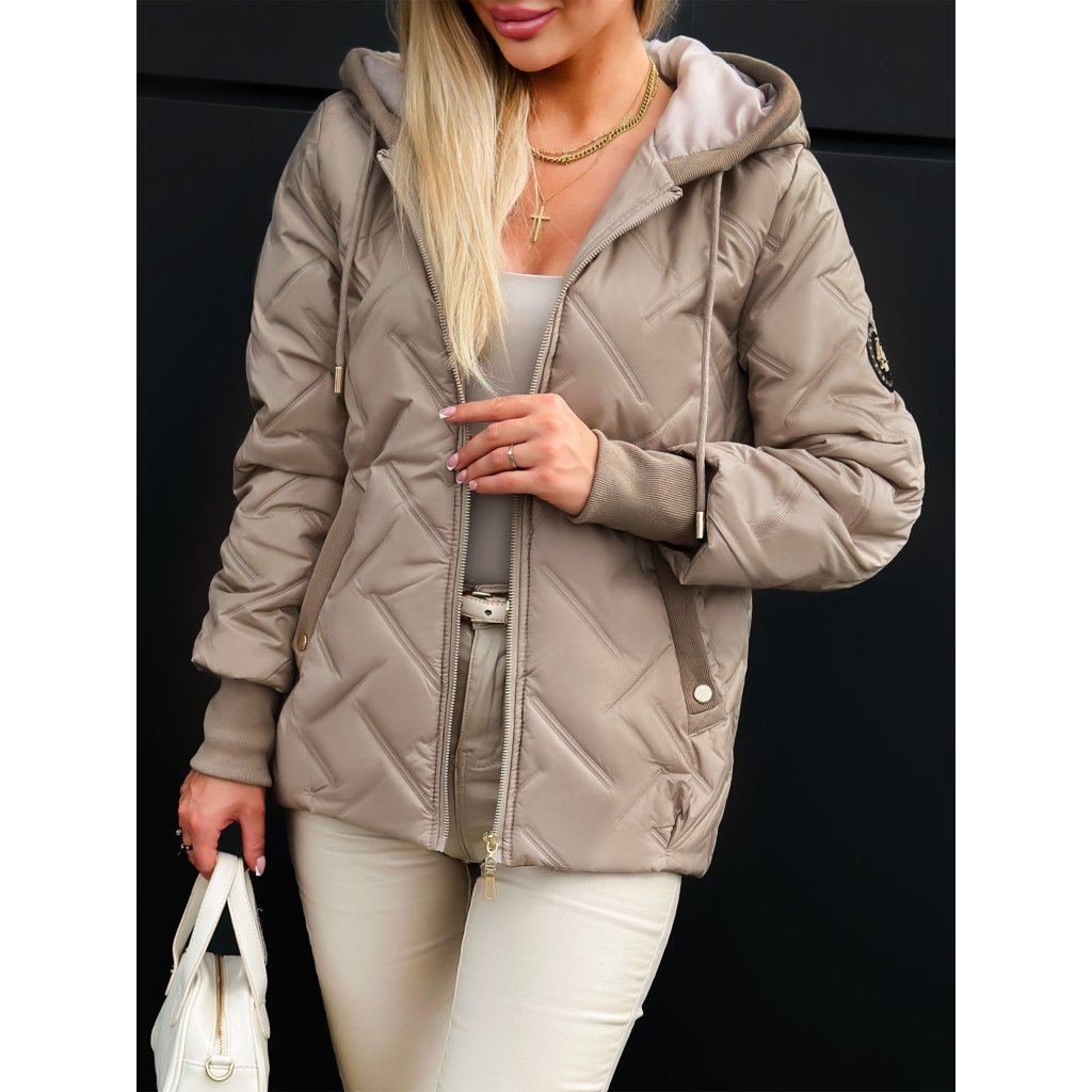 Elegantní podzimní bunda je ideální volbou pro chladnější dny. Díky prošívanému designu působí moderně a zároveň poskytuje příjemné teplo. Praktická kapuce chrání před větrem i deštěm, zatímco zapínání na zip usnadňuje oblékání. Bunda je doplněna o boční kapsy, které jsou zvýrazněny kontrastními detaily, a stylovou nášivku na rukávu.