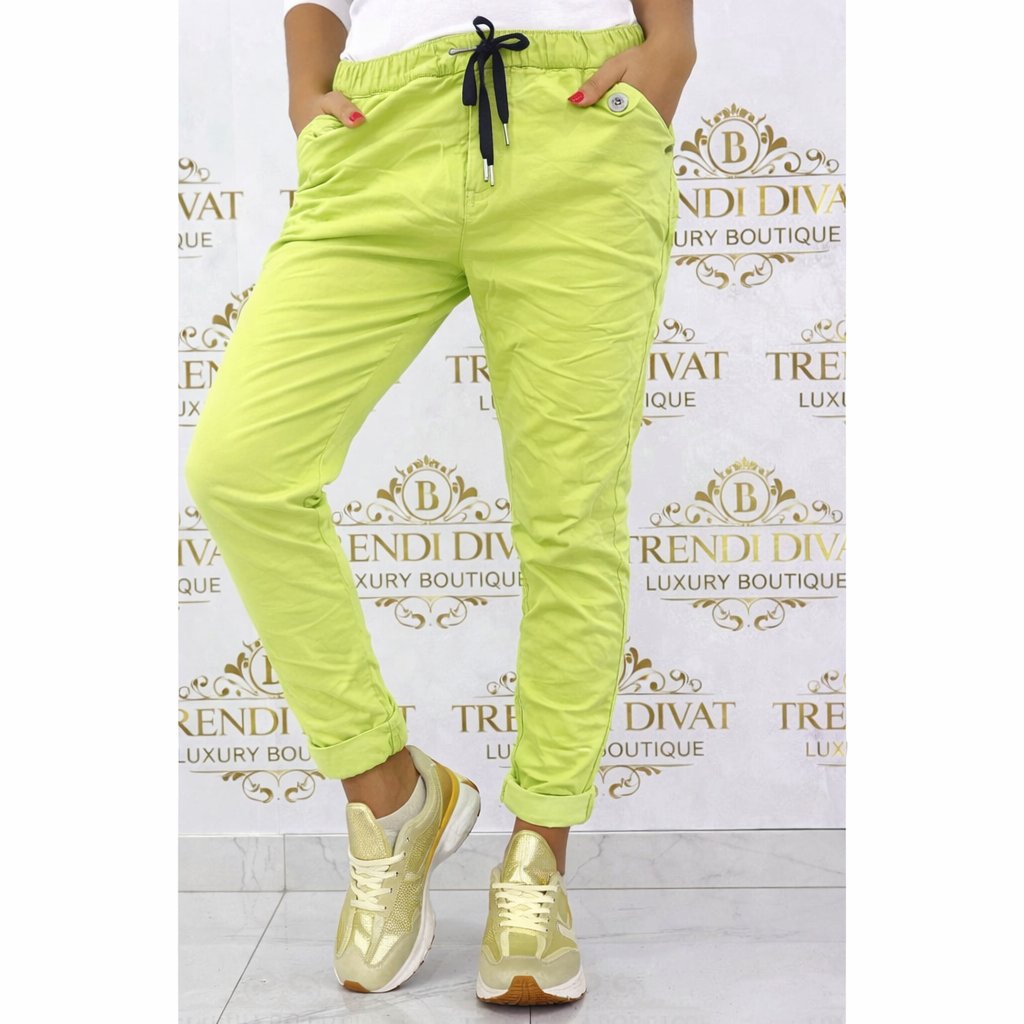 Tyto stylové a extrémně pružné kalhoty s krčeným efektem spojují pohodlí s moderním vzhledem. V pase mají praktickou gumu a tkaničku na stažení, díky čemuž se perfektně přizpůsobí různým typům postavy. Na bocích najdete dekorativní knoflíčky, které dodávají šmrnc, a boční kapsy, jež oceníte pro jejich praktičnost.