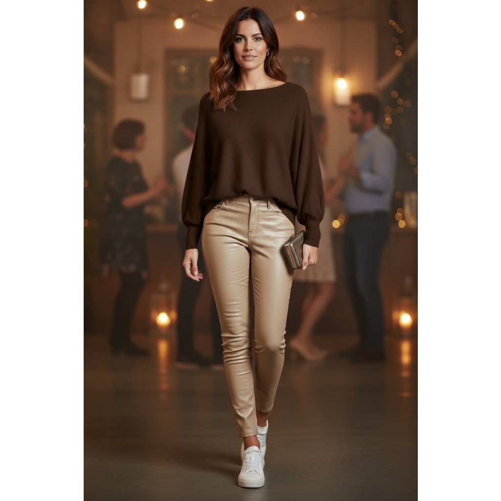 Svetřík ARIEL je dokonale ženský a elegantní kousek, který se hodí jak k ležérním outfitům, tak i na večerní akce. Příjemný úplet s vysokým podílem viskózy zaručuje měkkost a komfort při nošení. Střih se spadlými rameny a lehce balonkovými rukávy vytváří efekt luxusního, uvolněného vzhledu – přesně ten typ svetříku, který okamžitě povýší celý outfit.