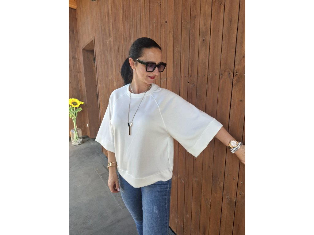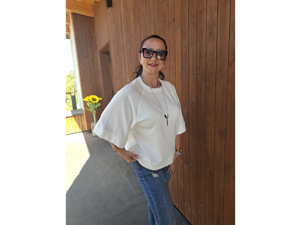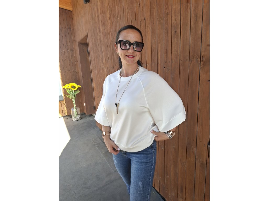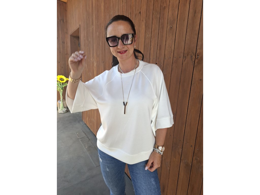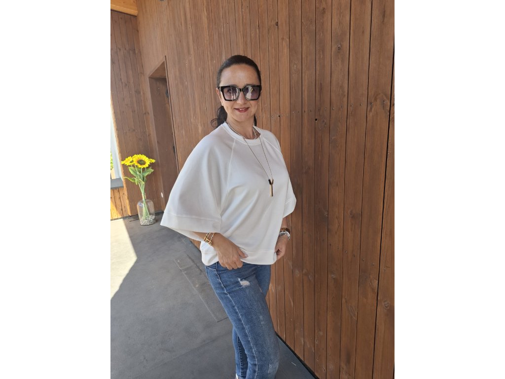 Elegantní oversize mikina v kratší verzi se širokým střihem a pohodlnými 3/4 rukávy je ideálním kouskem pro ženy, které mají rády styl i komfort. Díky univerzální velikosti padne na S–XL. Je vyrobena z měkkého, máslového materiálu, který je příjemný na dotek a dobře se nosí. Tento model je skvělou volbou nejen k džínám a legínám, ale i do kanceláře, na víkendové procházky, do městského stylu nebo na volnočasové setkání s přáteli. Rozměry: prsa 120 cm, délka 63 cm. Materiálové složení: 55% polyester, 29% viskóza, 6% elastan.