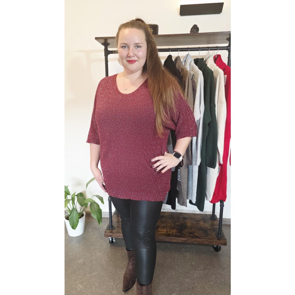 Svetřík je vyroben z kvalitní směsi polyesteru a elastanu, díky čemuž je příjemný na těle, lehce pružný a krásně drží tvar. Třpytivá nitka mu dodává elegantní vzhled, který oceníte jak při běžném nošení, tak i při slavnostnějších příležitostech.