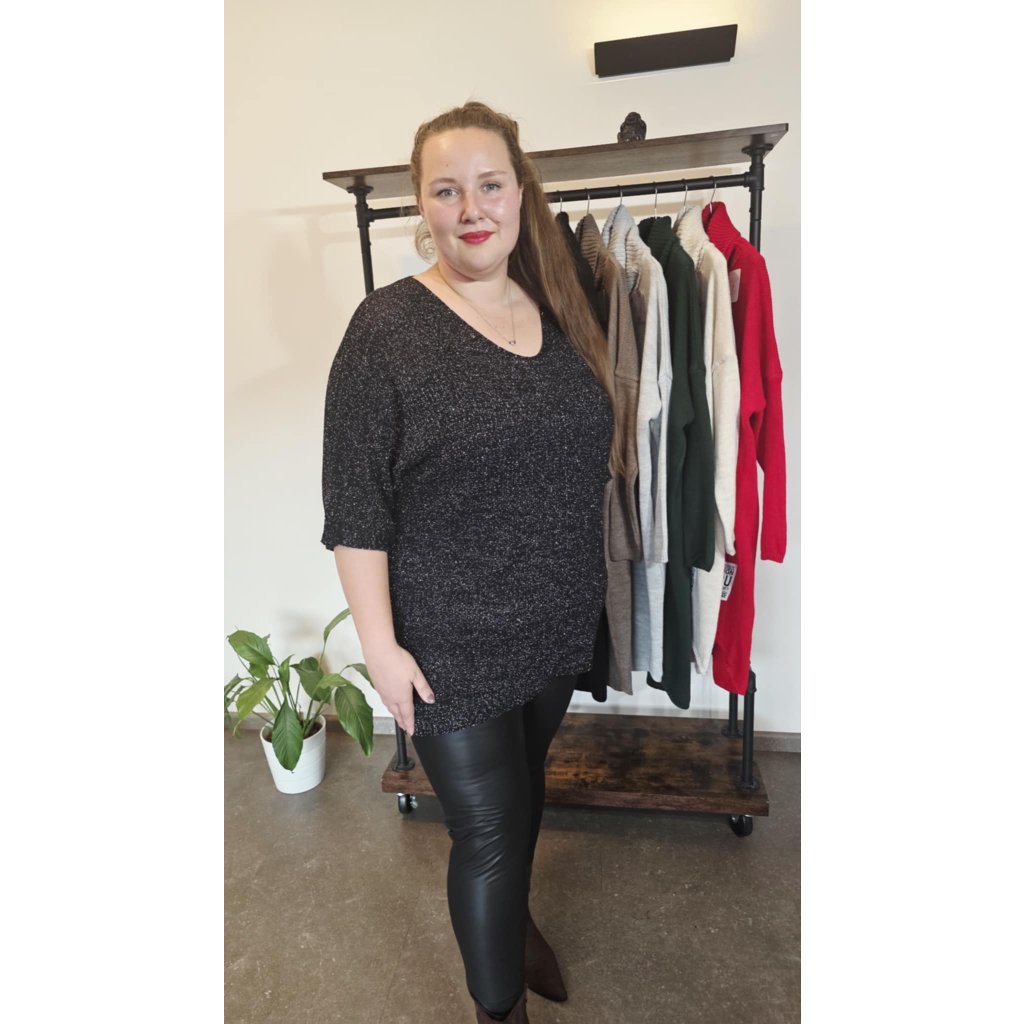 Svetřík je vyroben z kvalitní směsi polyesteru a elastanu, díky čemuž je příjemný na těle, lehce pružný a krásně drží tvar. Třpytivá nitka mu dodává elegantní vzhled, který oceníte jak při běžném nošení, tak i při slavnostnějších příležitostech.