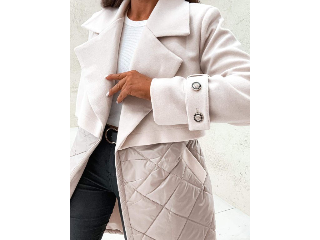Tento elegantní kabát s prodlouženou délkou od polského výrobce STAYHERE představuje perfektní kombinaci klasického stylu a moderních prvků. Horní část z vlny dodává luxusní vzhled a spolehlivě zahřeje, zatímco prošívaná spodní část zajišťuje extra ochranu proti chladu a přináší trendový prvek do celkového designu.