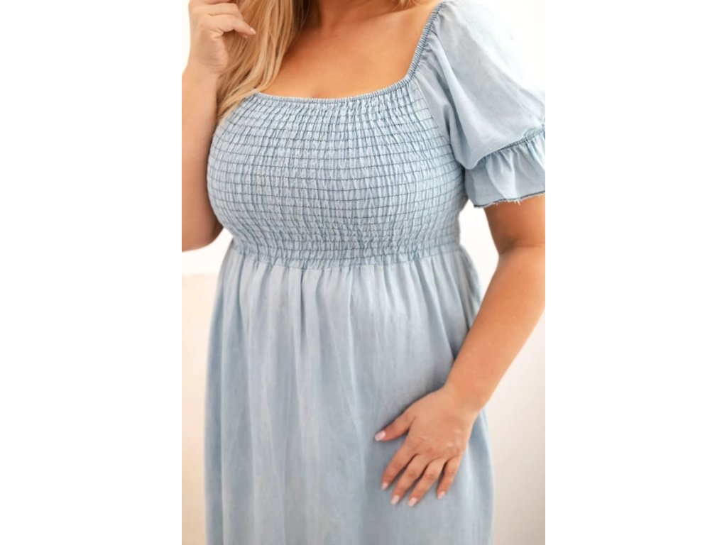 Šaty zaujmou svým čtvercovým výstřihem, krátkými nafouklými rukávy s volánkem a mírně rozšířeným spodním dílem, který dodává modelu lehkost a romantický nádech. Měkký a ekologický tencel je prodyšný, lehký a příjemný na dotek, ideální pro letní dny i večerní události.