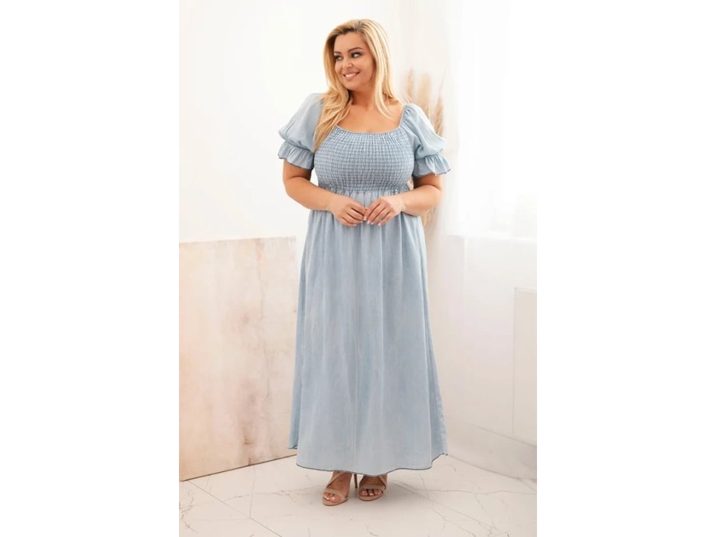Tyto stylové dámské šaty z 100% tencelu jsou navrženy pro ženy, které chtějí spojit komfort s elegancí a přirozeně zdůraznit svou ženskou siluetu. Maxi délka jemně zeštíhluje postavu, zatímco elastický živůtek s řasením se přizpůsobí různým tvarům těla a zajistí pohodlné nošení po celý den.