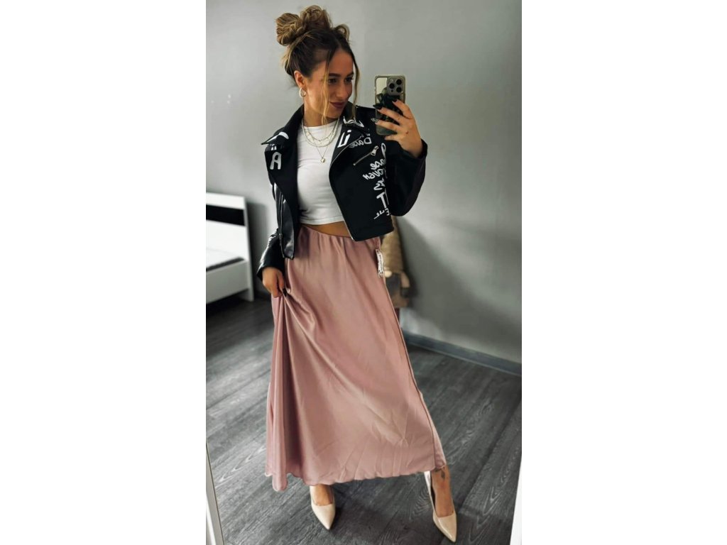 Dopřejte si eleganci a pohodlí s naší dlouhou saténovou sukní! Tento kousek má pružný pas, díky kterému se skvěle přizpůsobí vaší postavě, a jemný saténový materiál, který zajišťuje příjemné nošení po celý den.