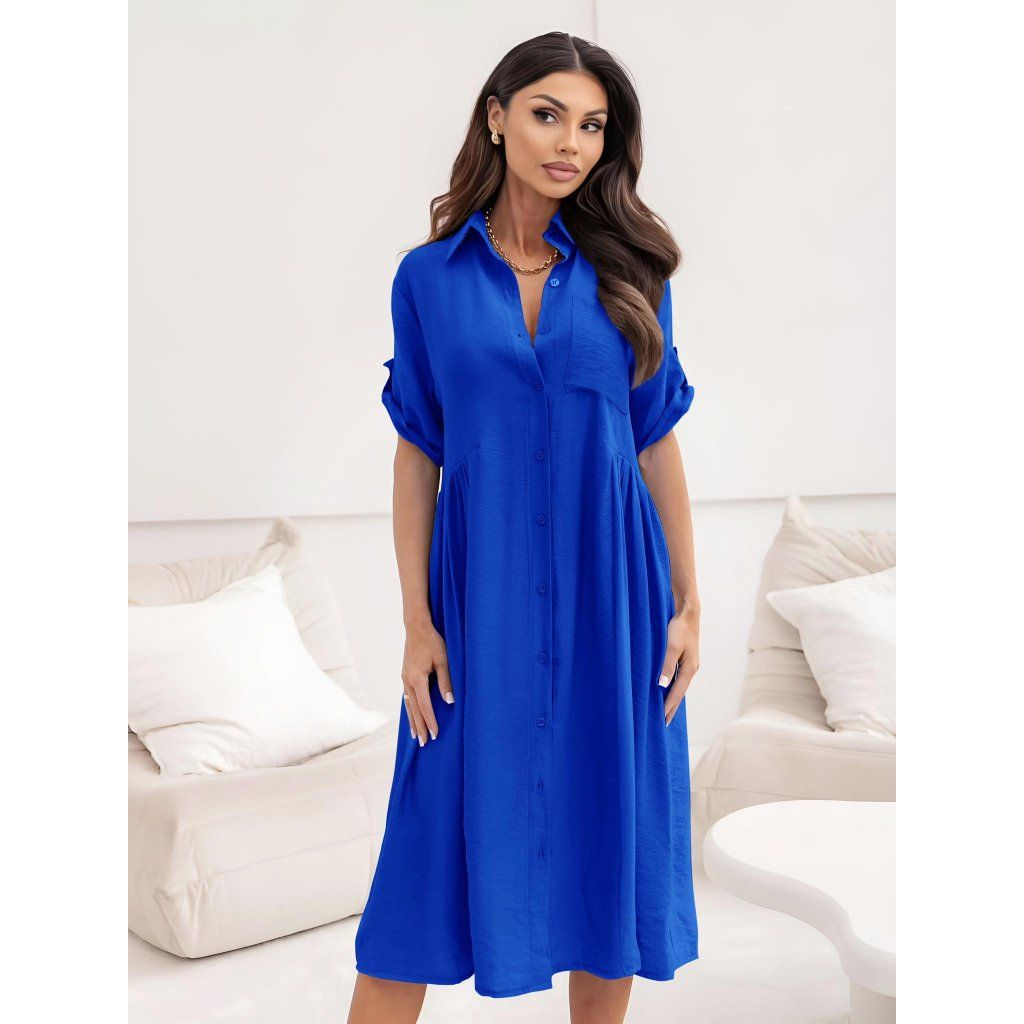 Košilové šaty lněné královsky modré