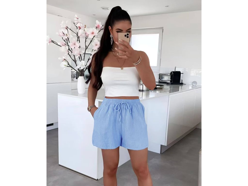 Stylové a vzdušné mušelínové šortky z jemné 100% bavlny jsou ideální volbou pro teplé dny. Díky pružnému pasu na gumu doplněnému o stahovací šňůrku se snadno přizpůsobí postavě a poskytnou maximální pohodlí.